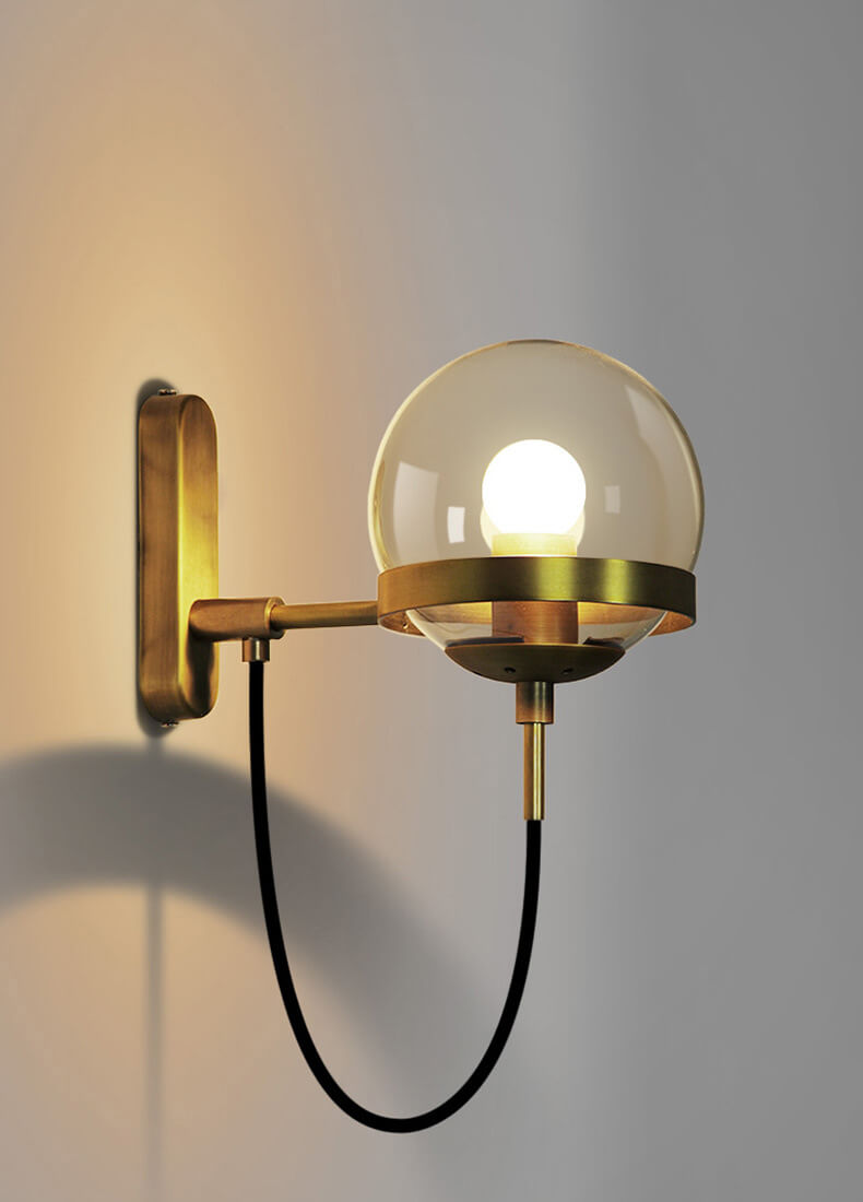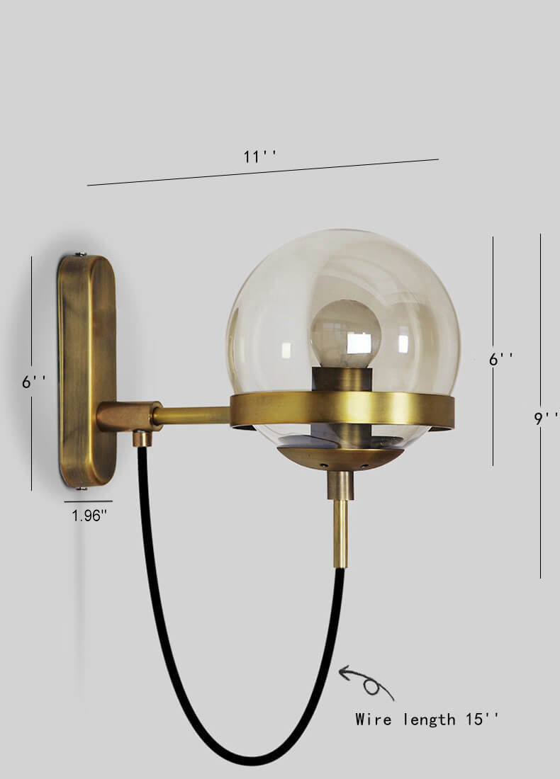 مصباح حائط كروي مزود بذراع وضوء واحد على شكل كرة زجاجية