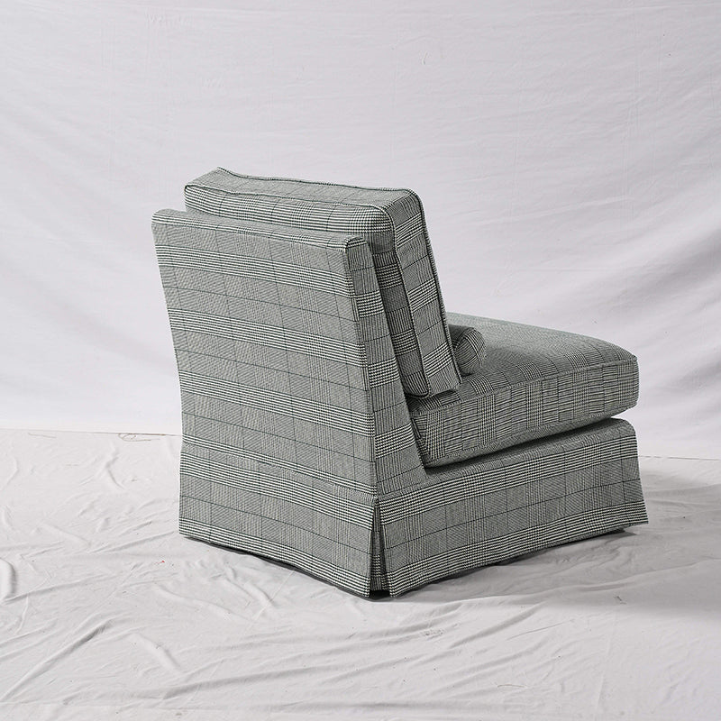 This armless vintage-style lounge chair is upholstered in a refreshing blend of green and white fabric, giving it a soft retro look that blends well in any cozy corner. Designed with a removable and washable cover, it’s easy to maintain while retaining its charm.
