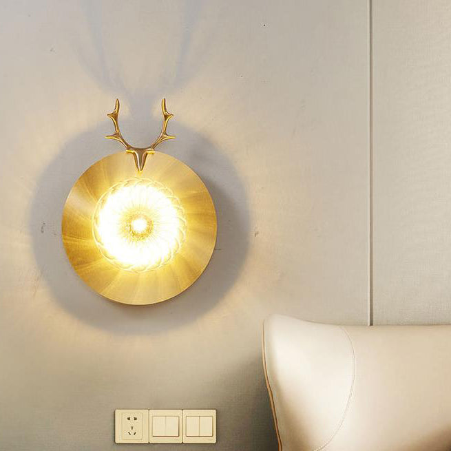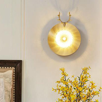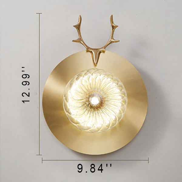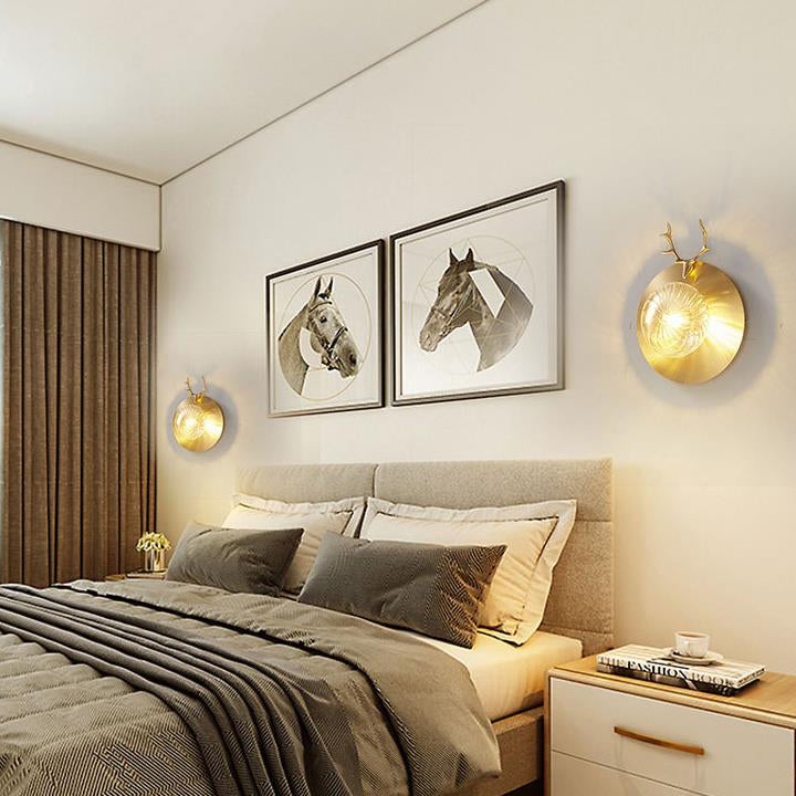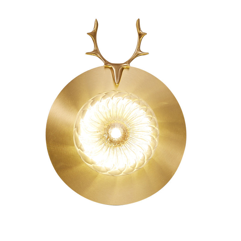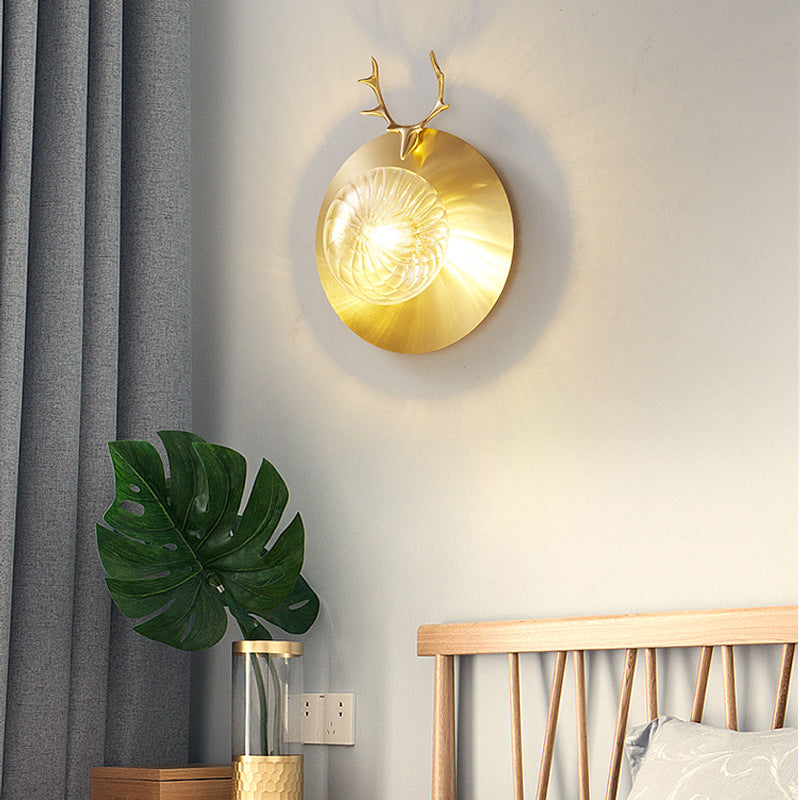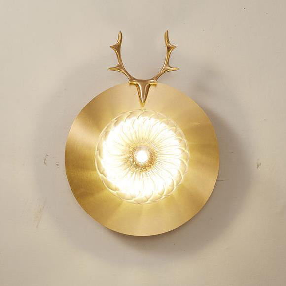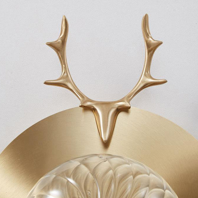 مصباح حائط صناعي فاخر بتصميم رأس غزال إبداعي مصنوع من النحاس بالكامل مزود بمصباح واحد