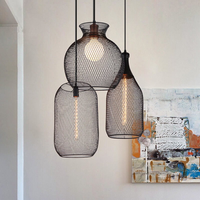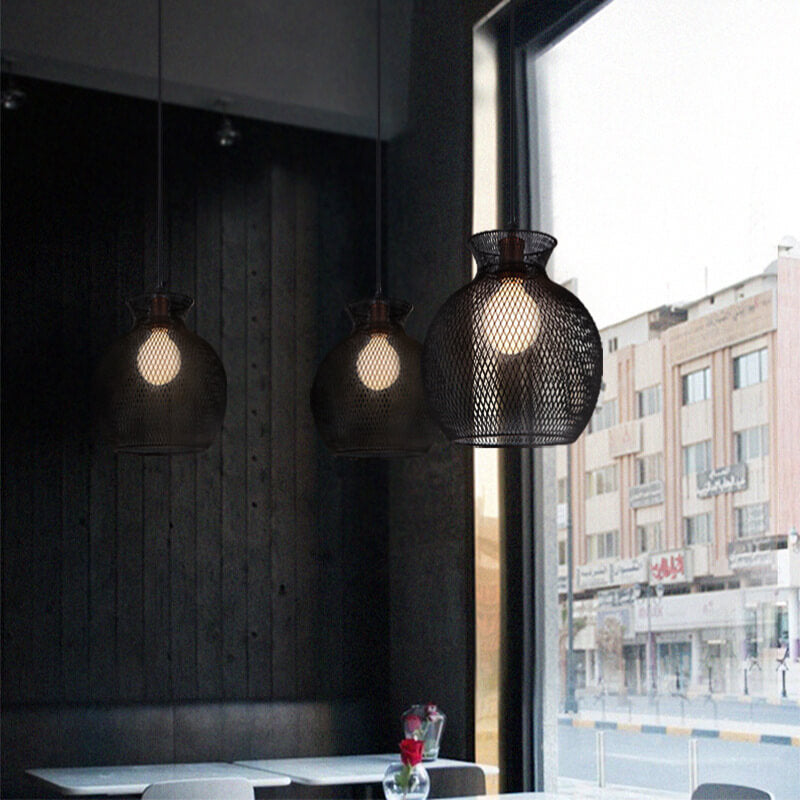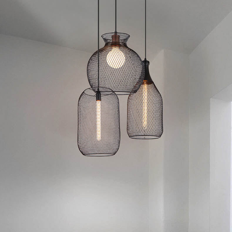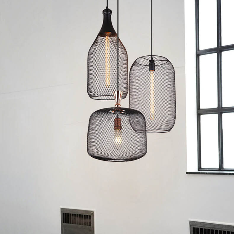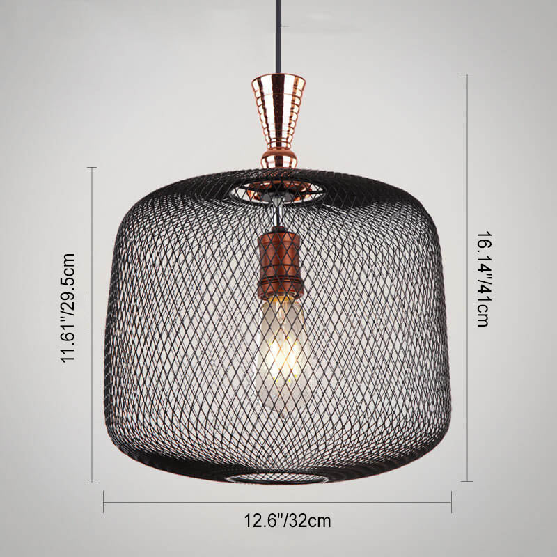 مصباح معلق صناعي إبداعي أسطواني من الحديد الشبكي مزود بمصباح واحد
