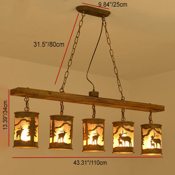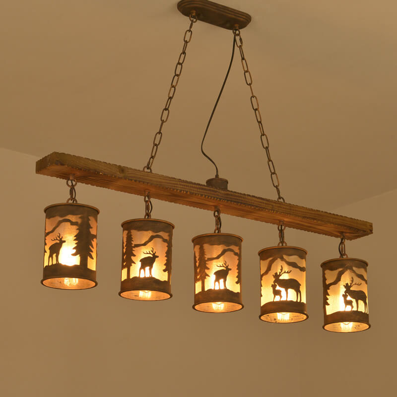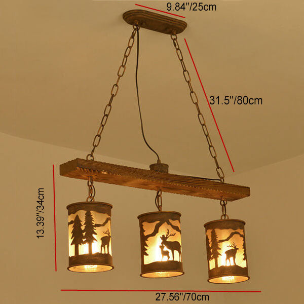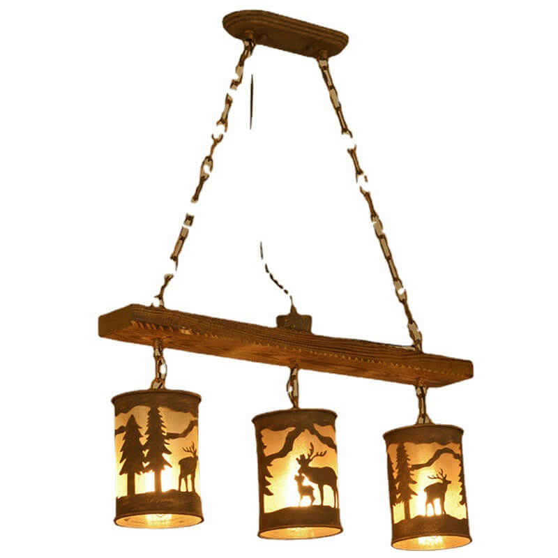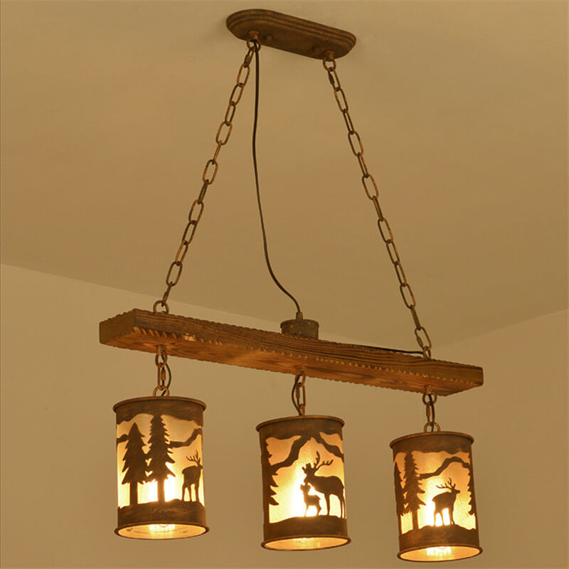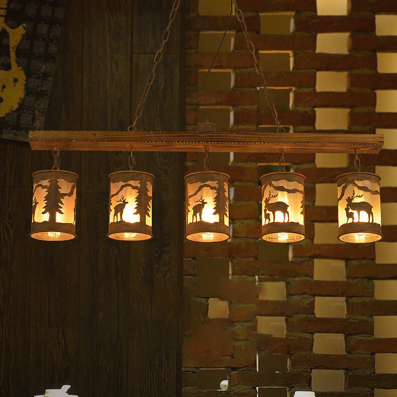 ثريا صناعية بتصميم ريترو إبداعي طويل من الخشب بأسطوانة بثلاثة مصابيح ونصف