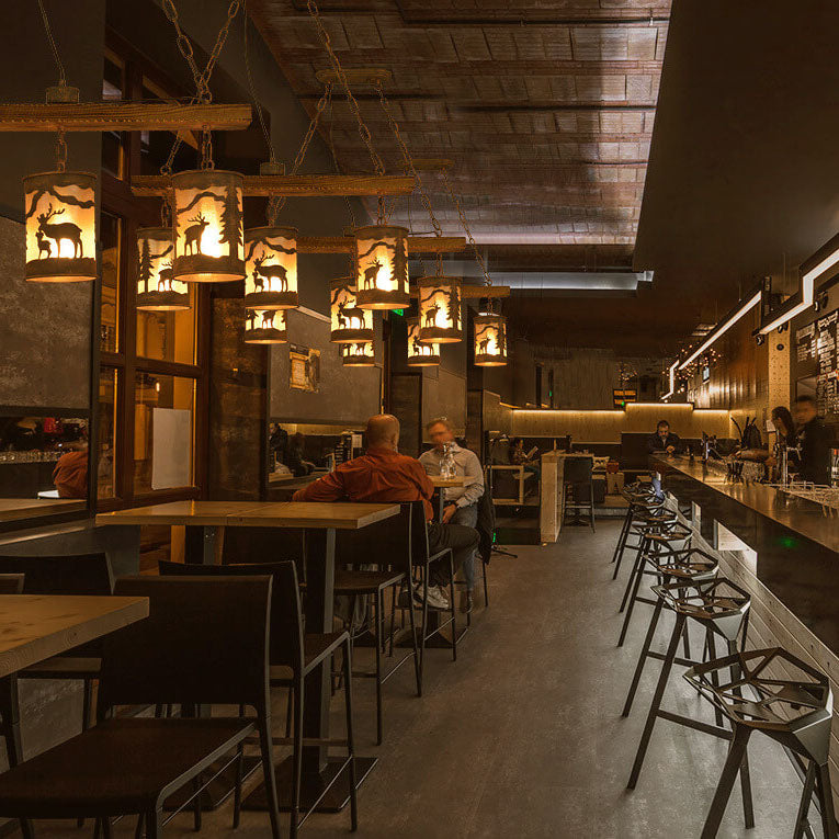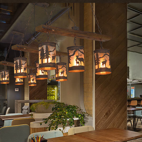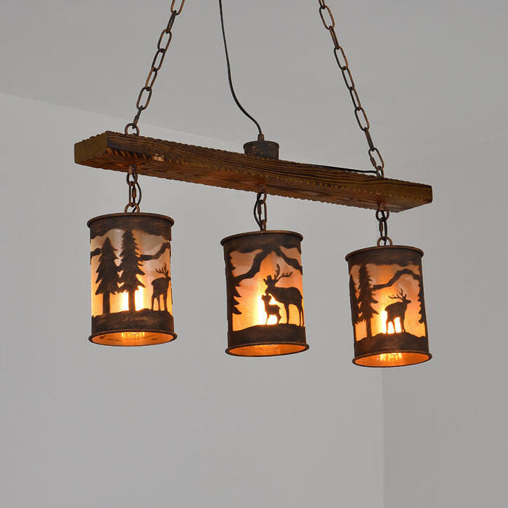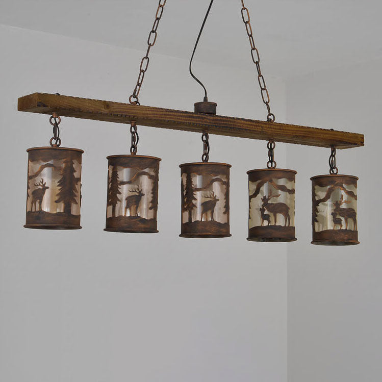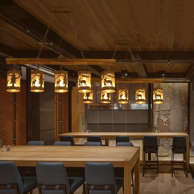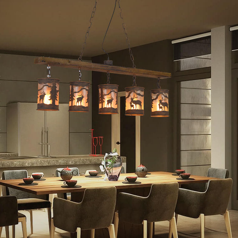 ثريا صناعية بتصميم ريترو إبداعي طويل من الخشب بأسطوانة بثلاثة مصابيح ونصف