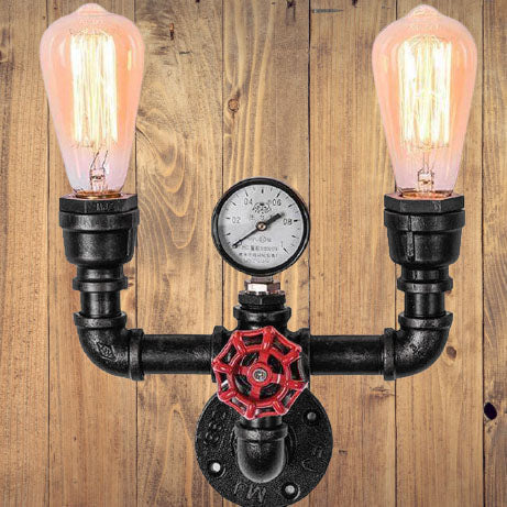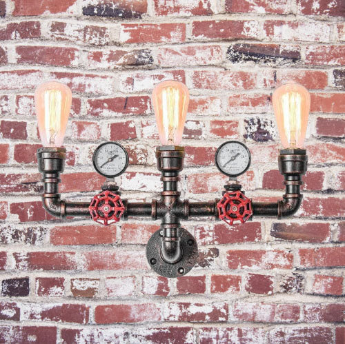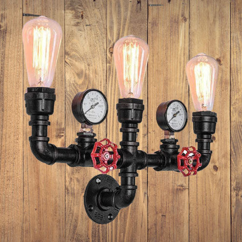 مصابيح حائطية صناعية بتصميم ريترو إبداعي من الأنابيب المعدنية مزودة بإضاءة 2/3