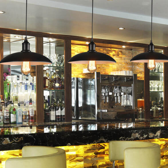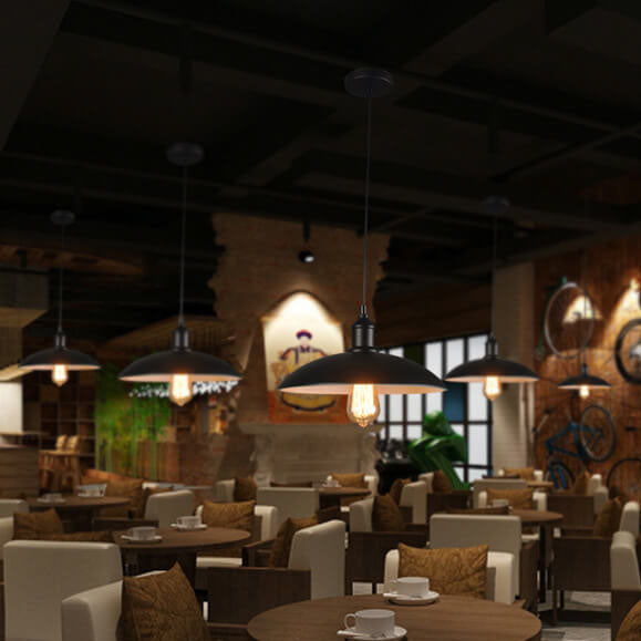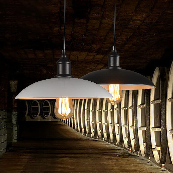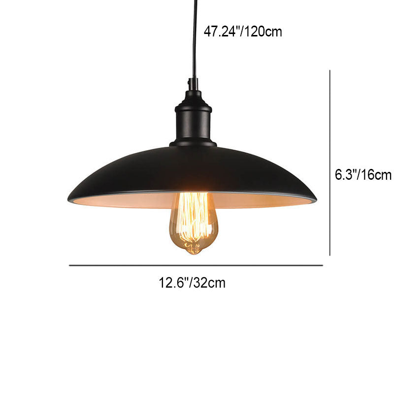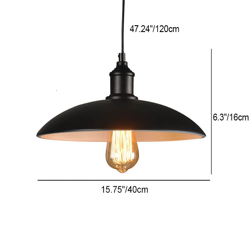 مصباح معلق صناعي عتيق بغطاء وعاء دائري من الحديد مزود بمصباح واحد