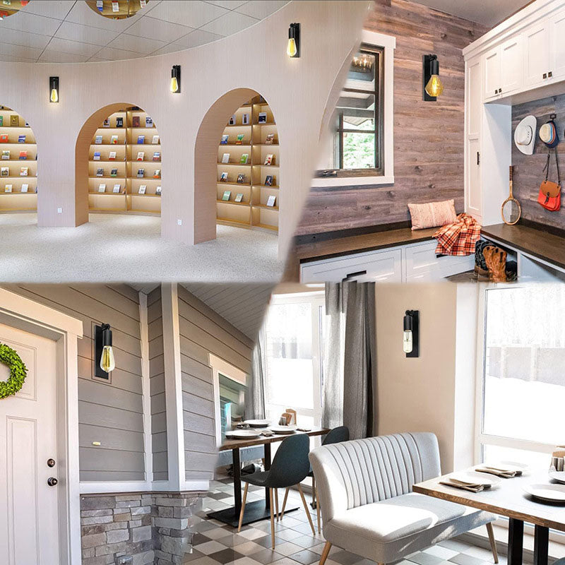 مصباح حائط دائري زجاجي صناعي عتيق بإطار أسود من الحديد ومصباح واحد
