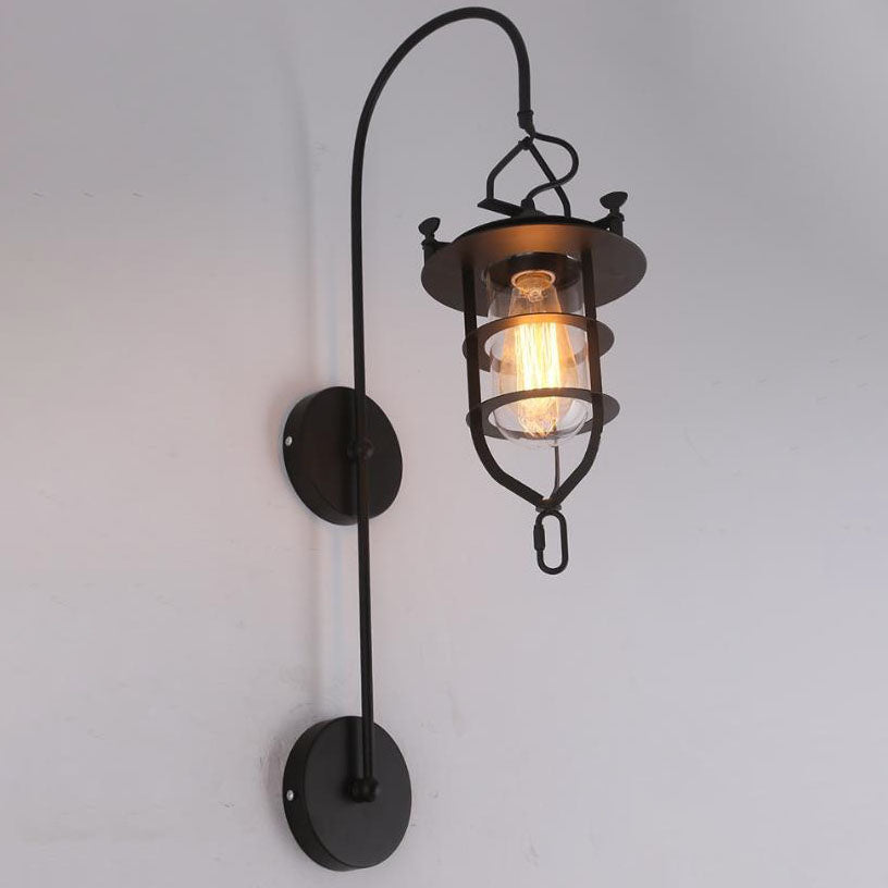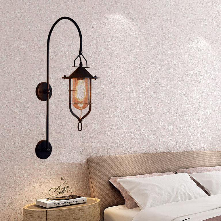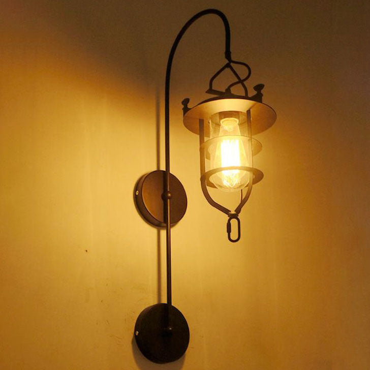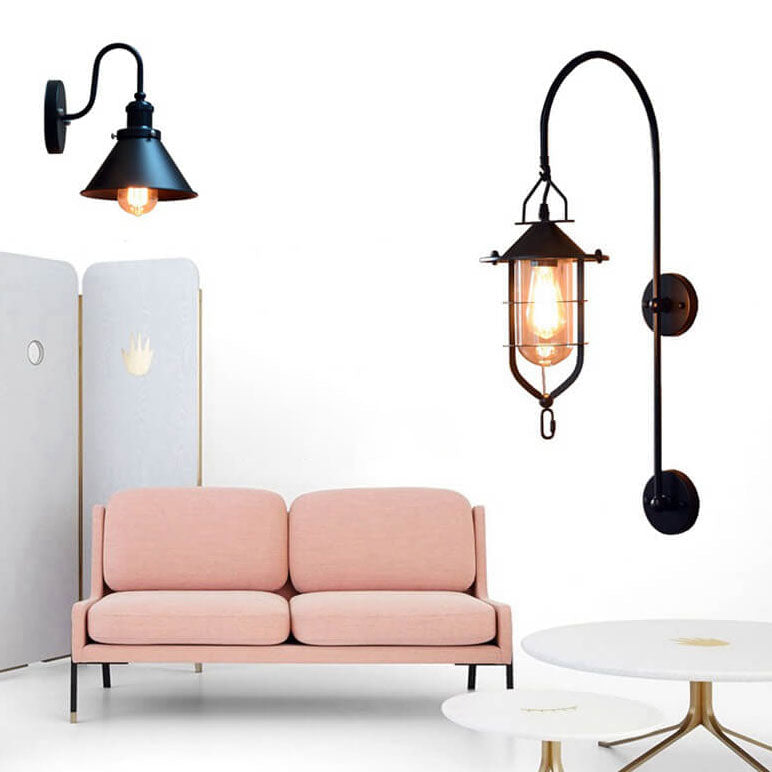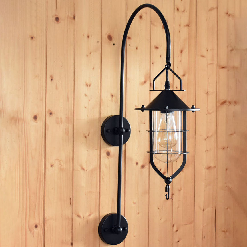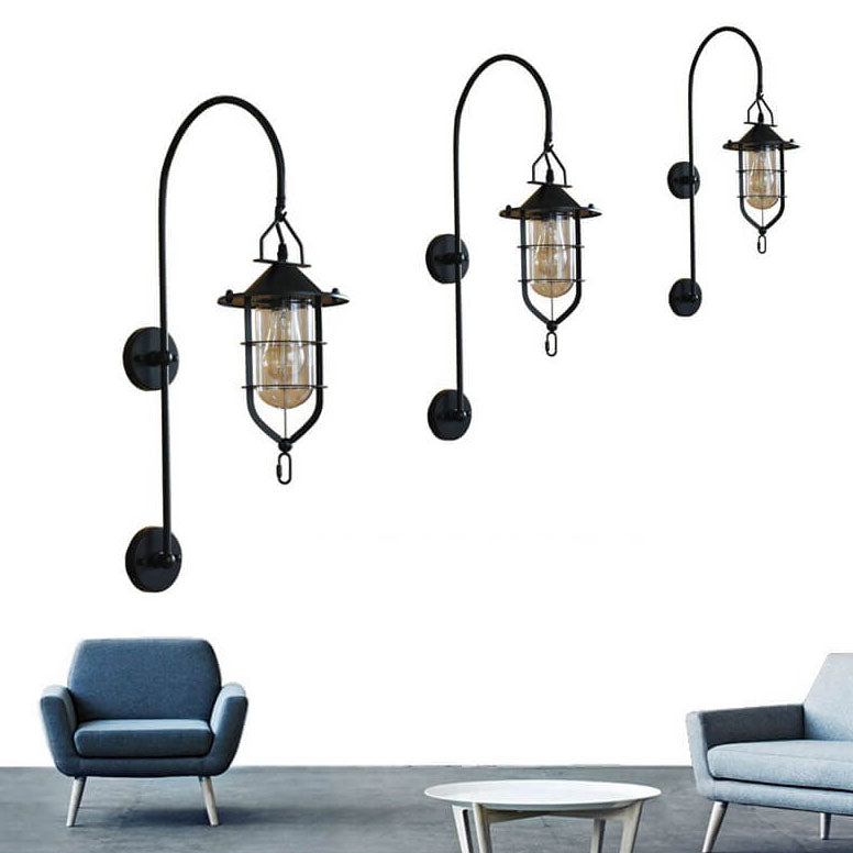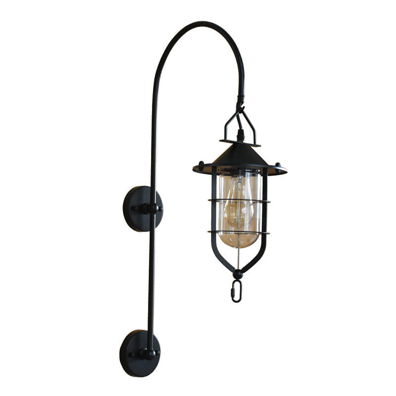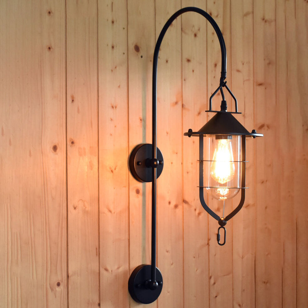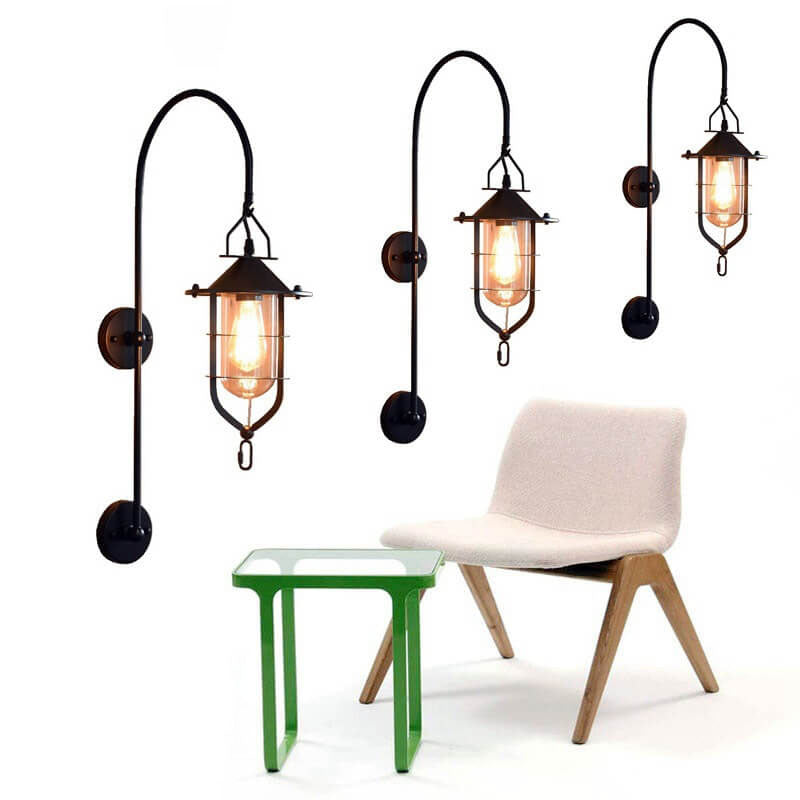 مصباح حائطي صناعي عتيق بذراع منحني وقاعدة حديدية ومصباح واحد