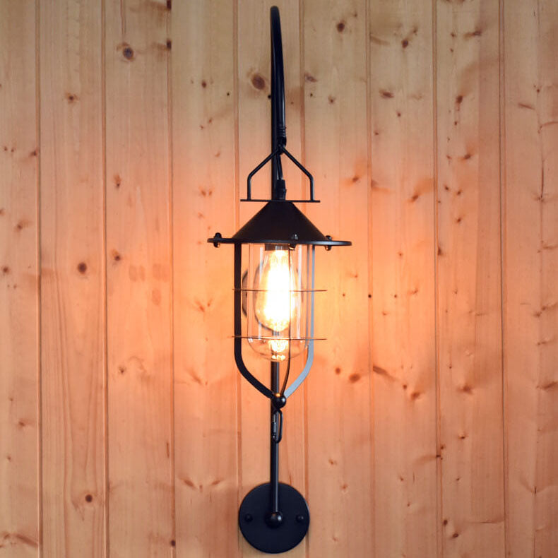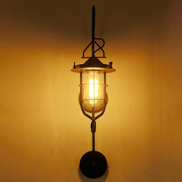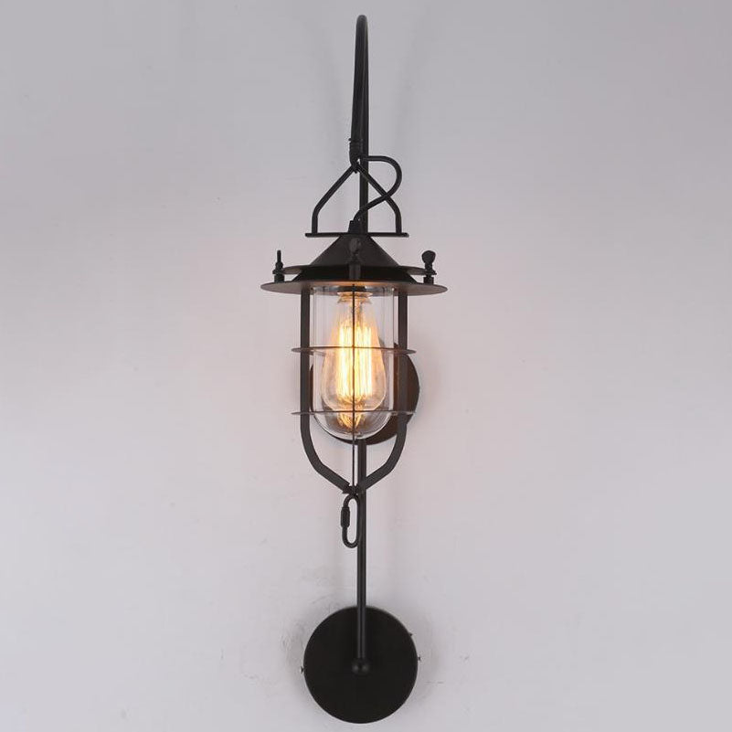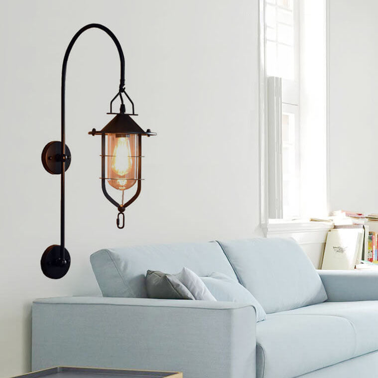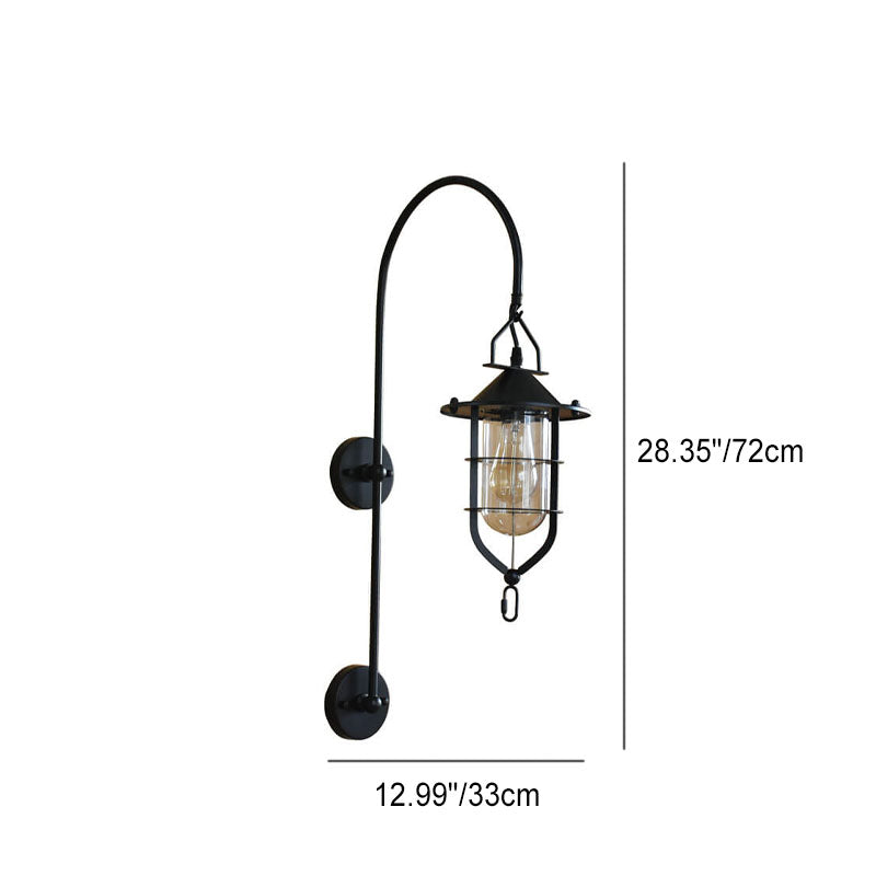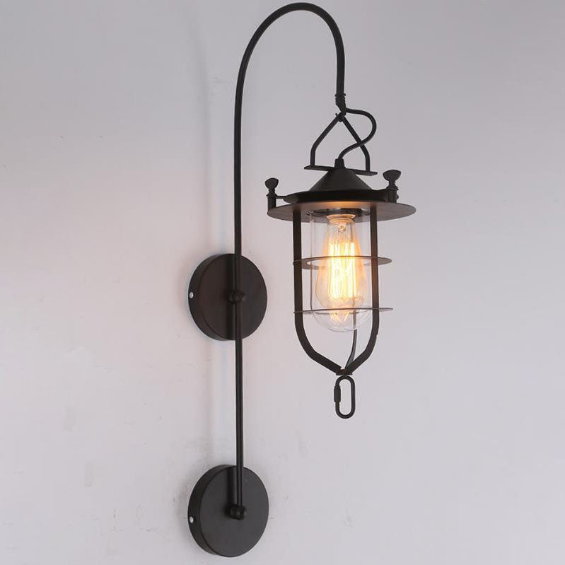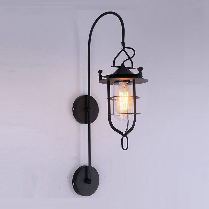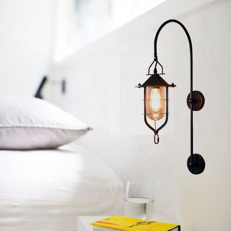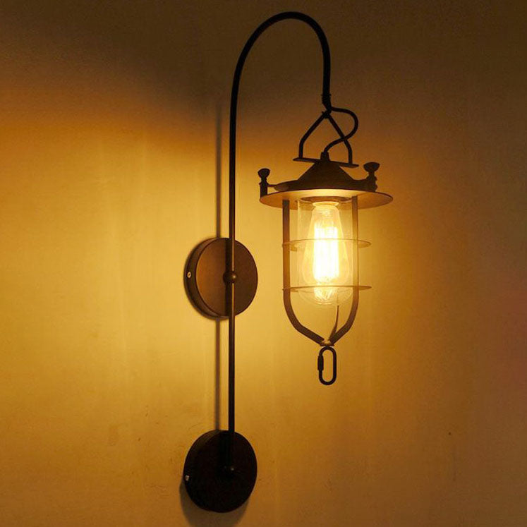 مصباح حائطي صناعي عتيق بذراع منحني وقاعدة حديدية ومصباح واحد