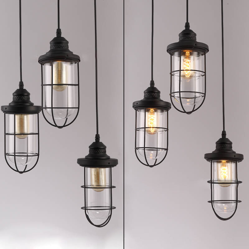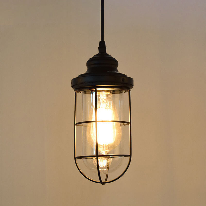 مصباح معلق صناعي عتيق مصنوع من الحديد والزجاج مزود بمصباح واحد