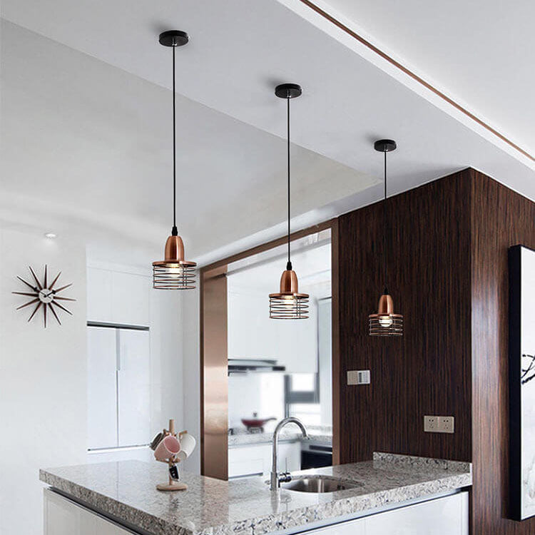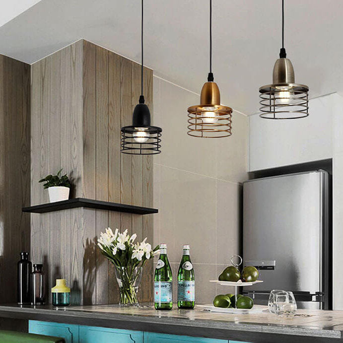 مصباح معلق صناعي عتيق من الحديد الربيعي مزود بمصباح واحد