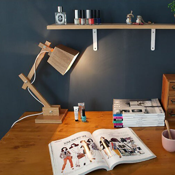 Industrial Vintage Solid Wood Cone Long Arm 1-Light Table Lamp