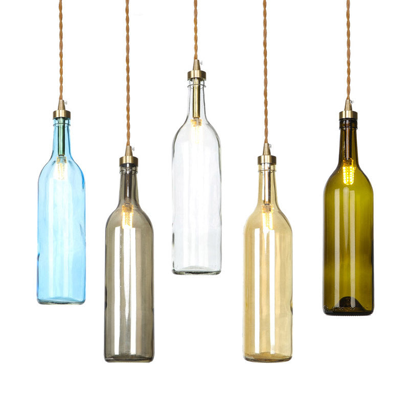 مصباح معلق صناعي عتيق من النحاس على شكل زجاجة نبيذ