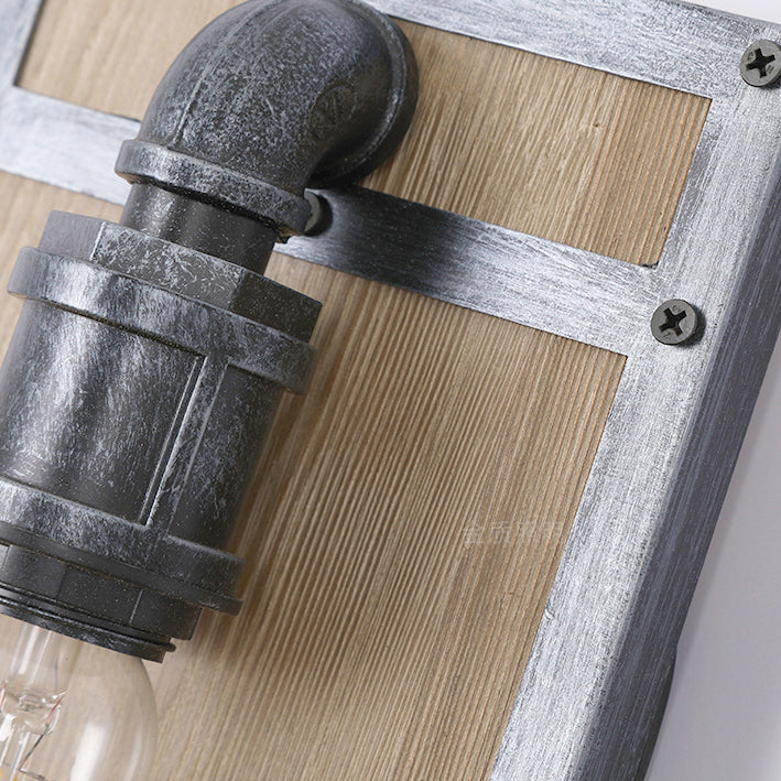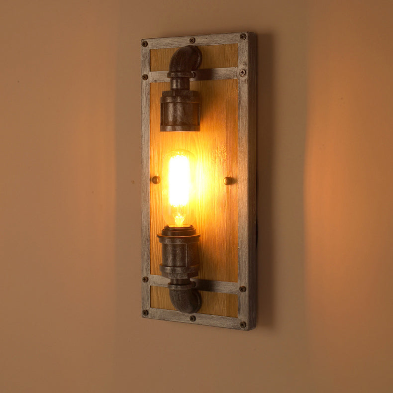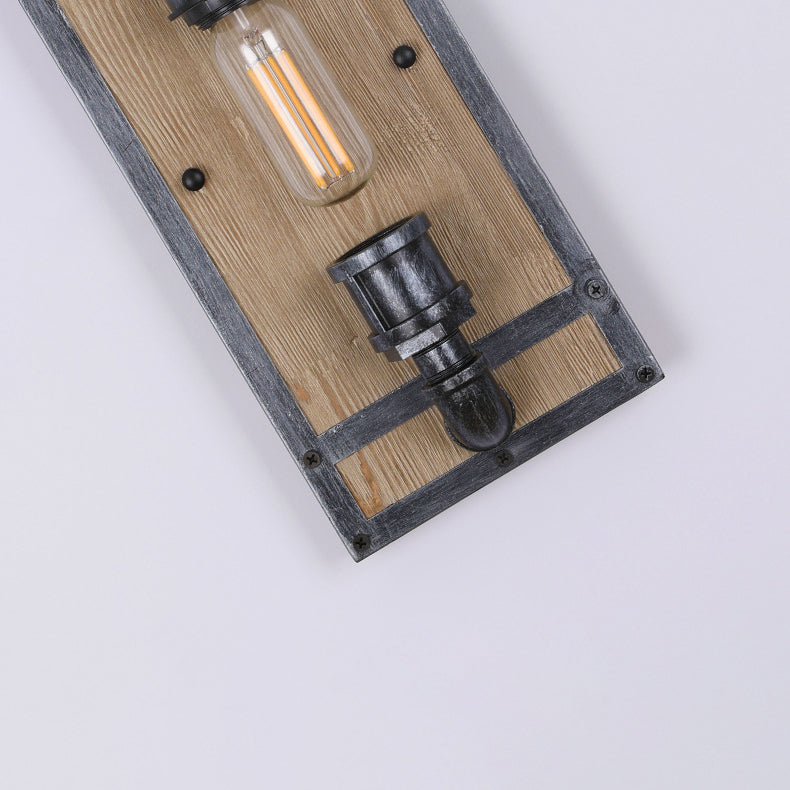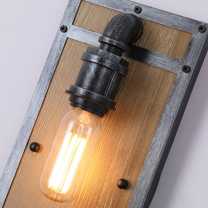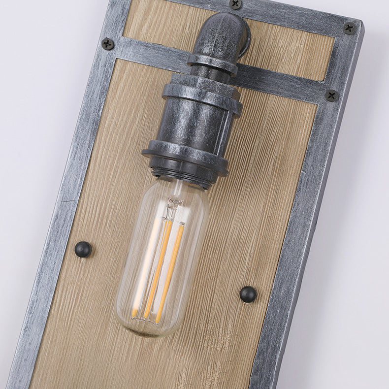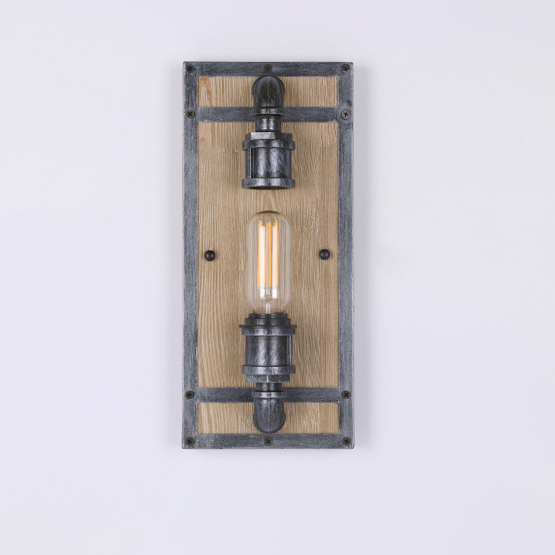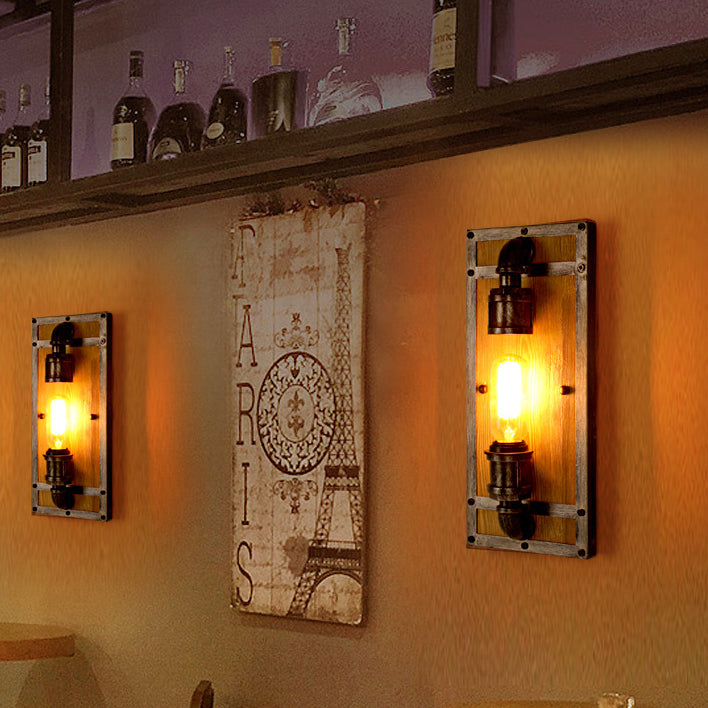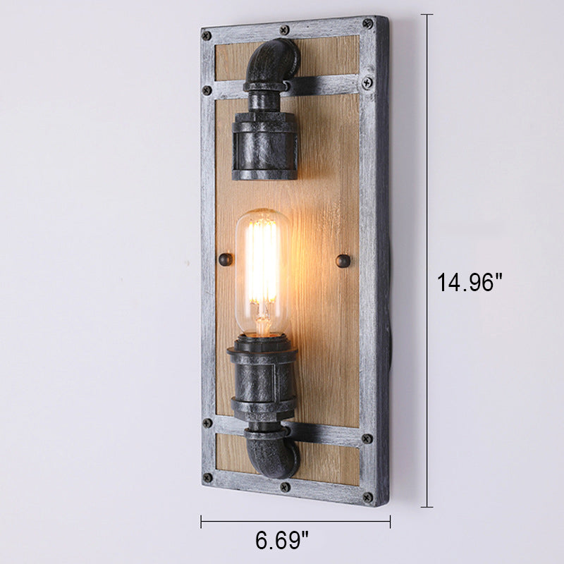 مصباح حائطي صناعي عتيق بقاعدة خشبية مع قفص ومصباح واحد
