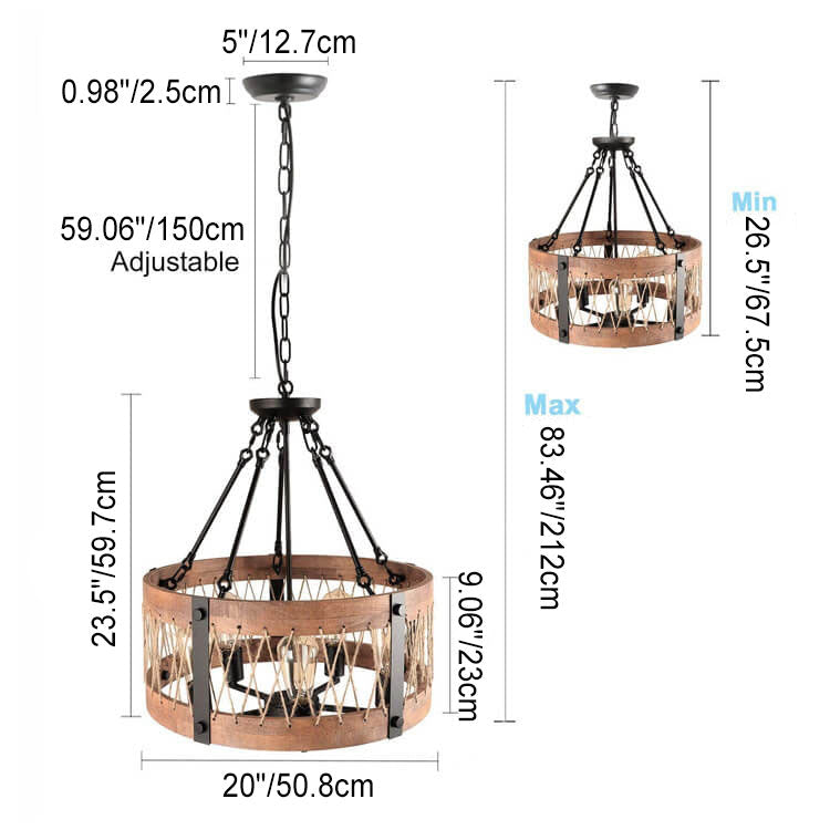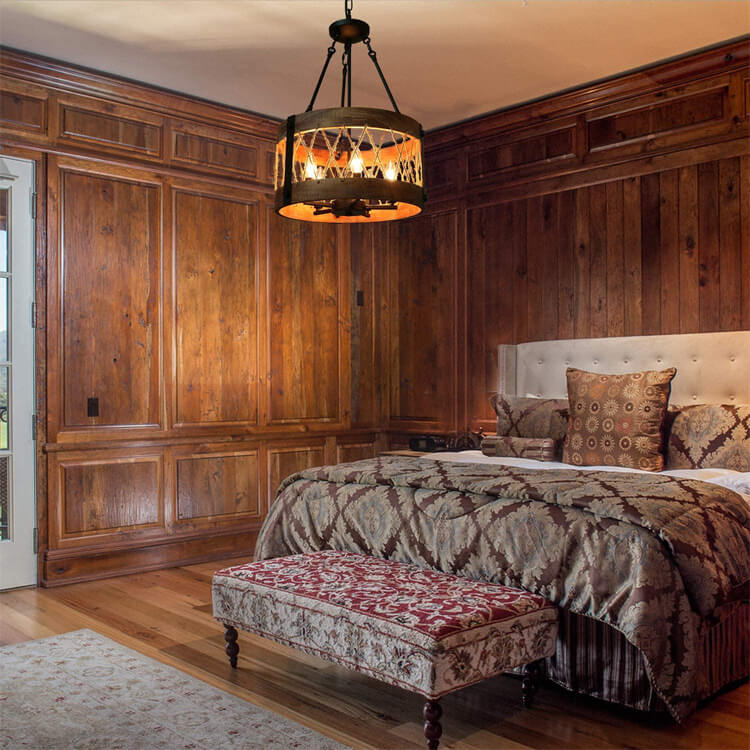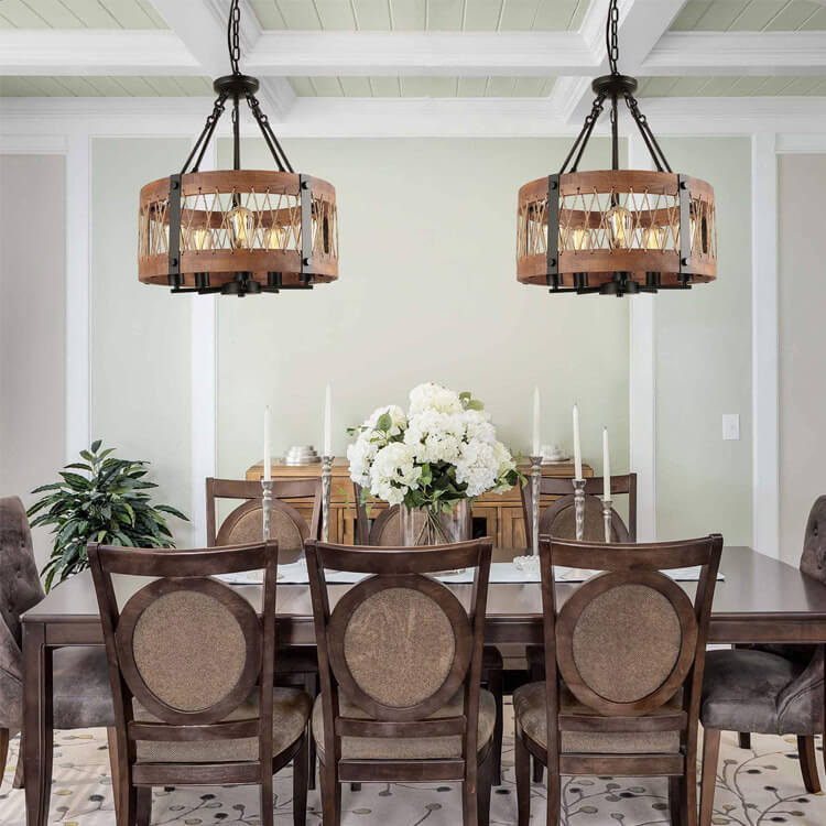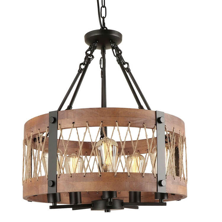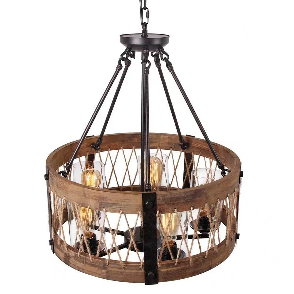 ثريا صناعية عتيقة من الخشب على شكل أسطوانة زجاجية مزودة بخمسة مصابيح