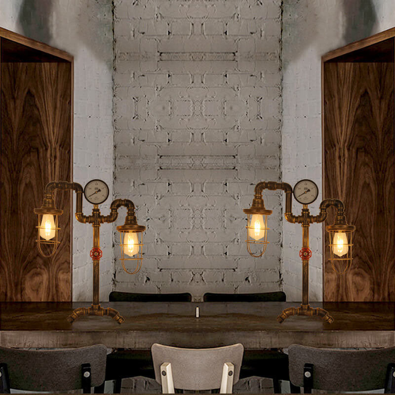 Industrial Vintage Wrought Iron Water Pipe 2-Light Table Lamp