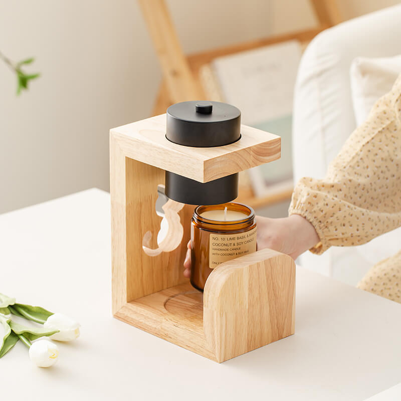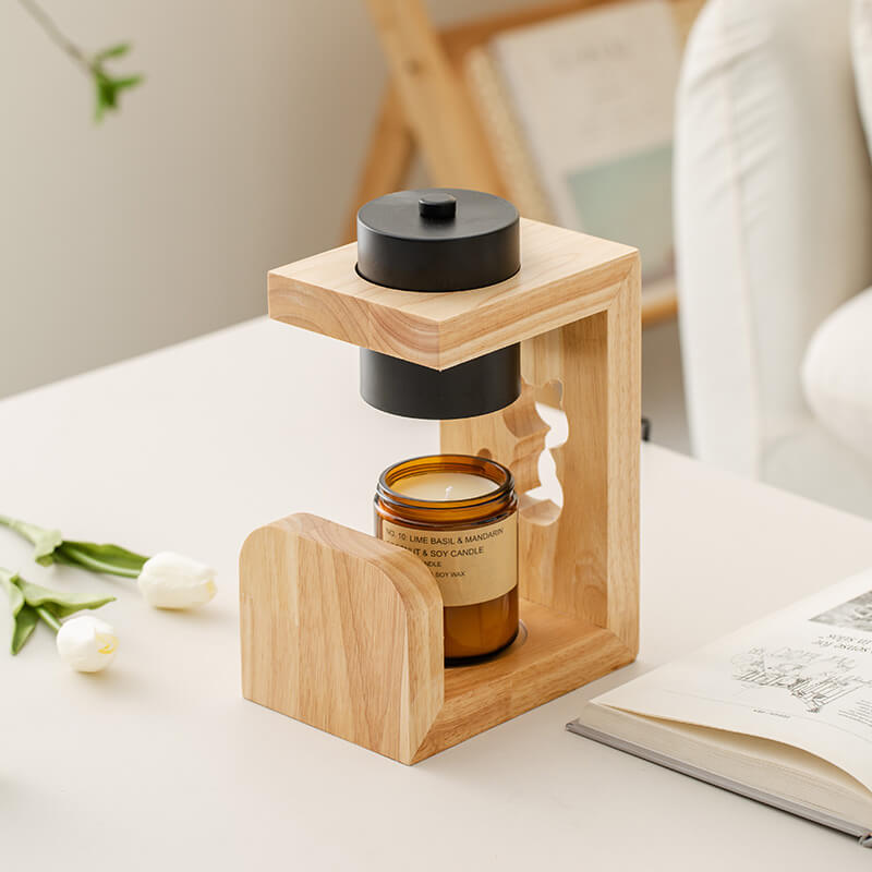 Japanese Creative Iron Cat Whale Hollow Wood Base 1-Light Melting Wax Table Lamp
