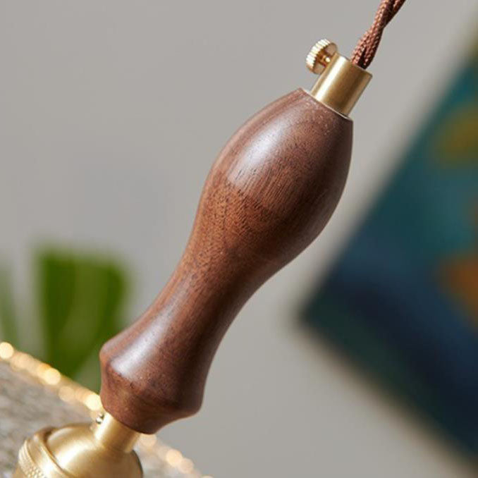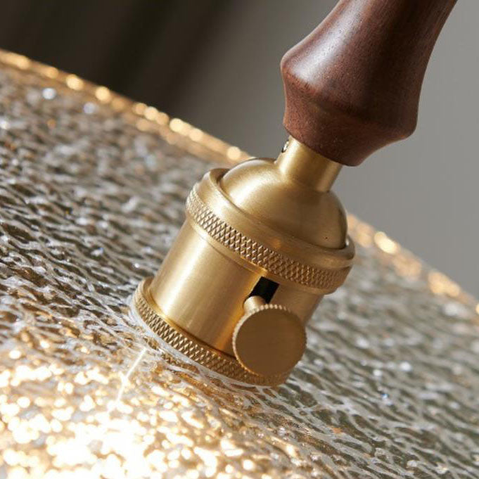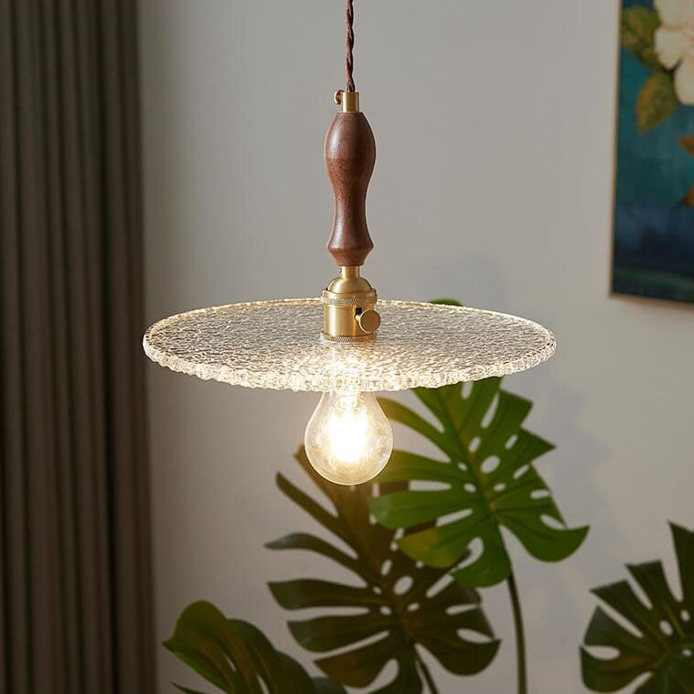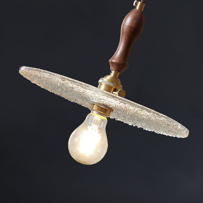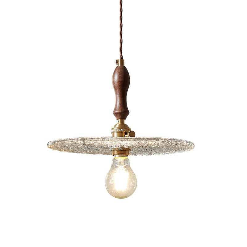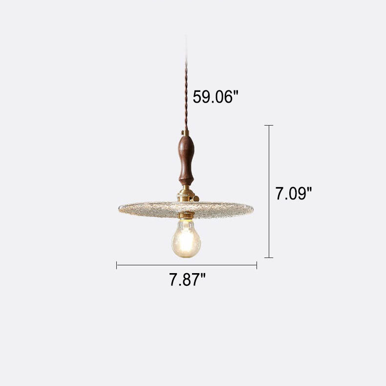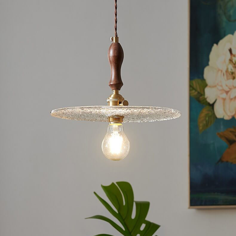 مصباح معلق ياباني دائري من خشب الجوز بقاعدة زجاجية مصقولة، مزود بمصباح واحد
