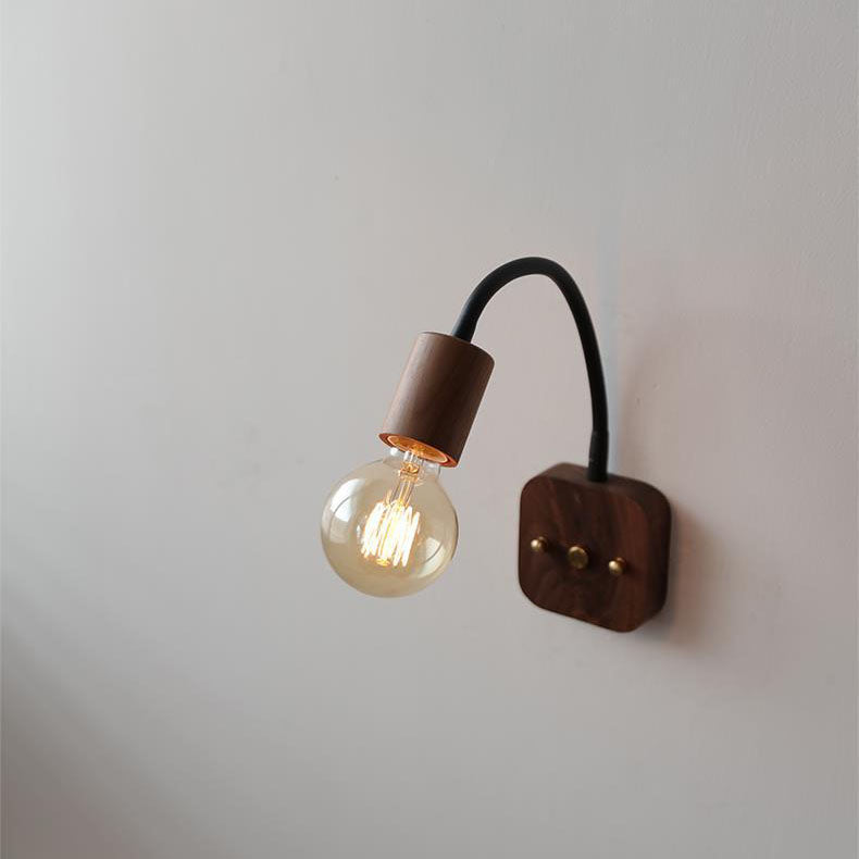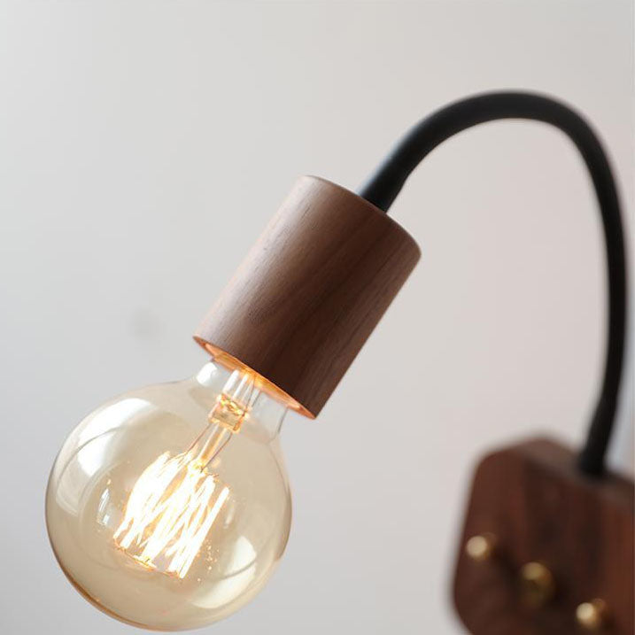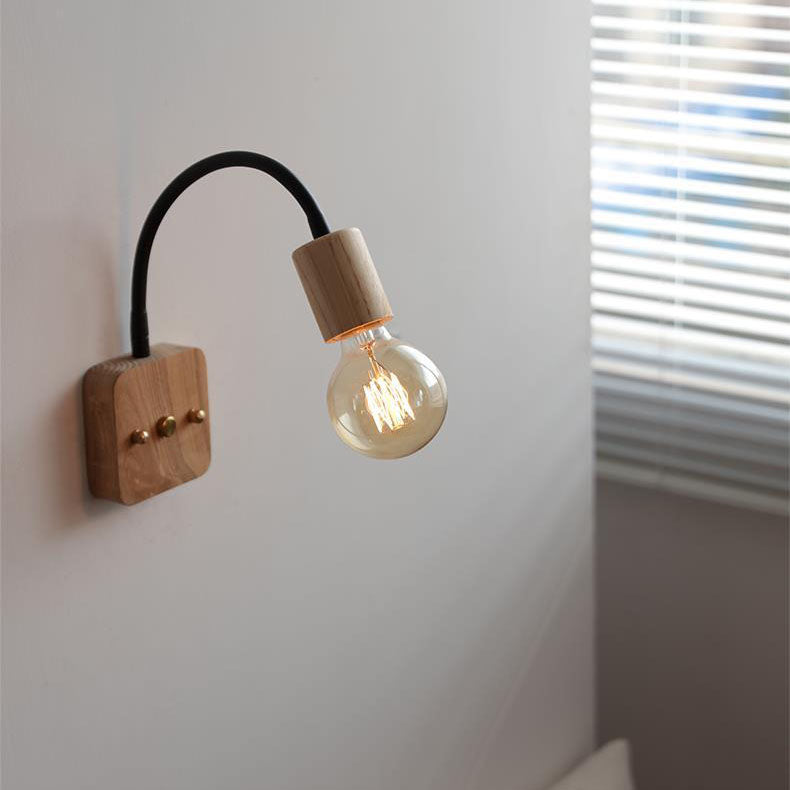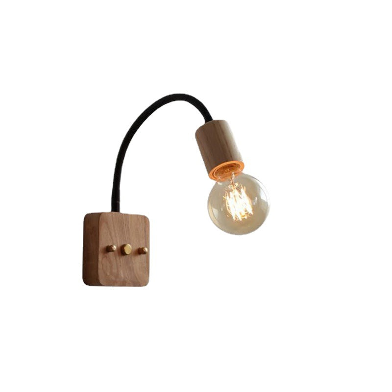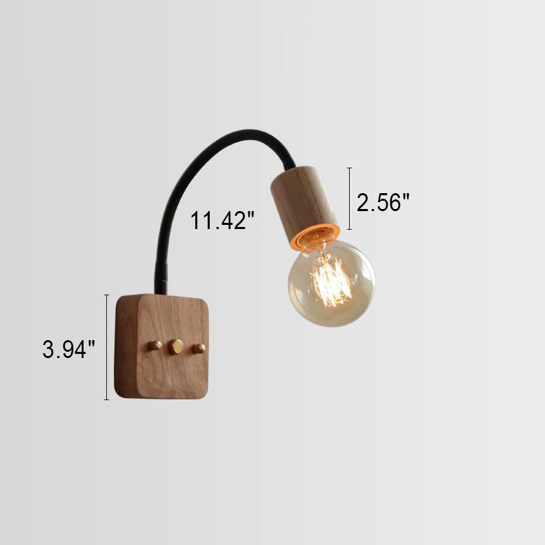 مصباح حائط ياباني بسيط مصنوع من خشب الدردار مع خرطوم قابل للتعديل وإضاءة واحدة