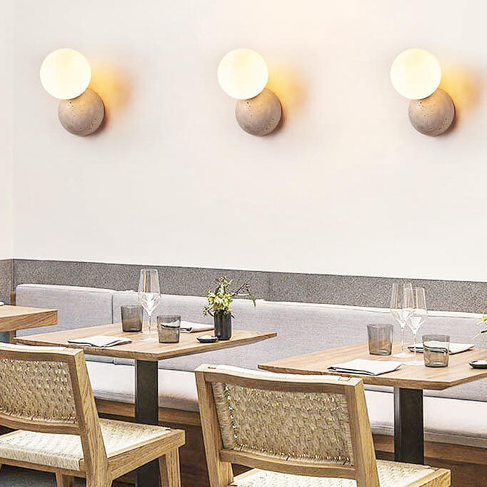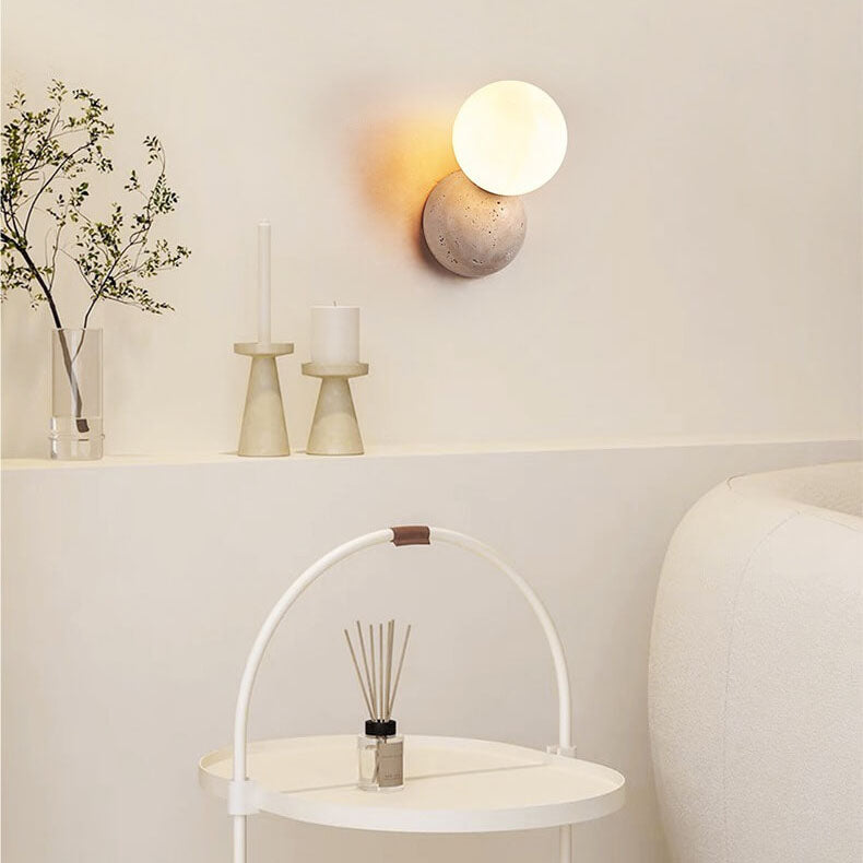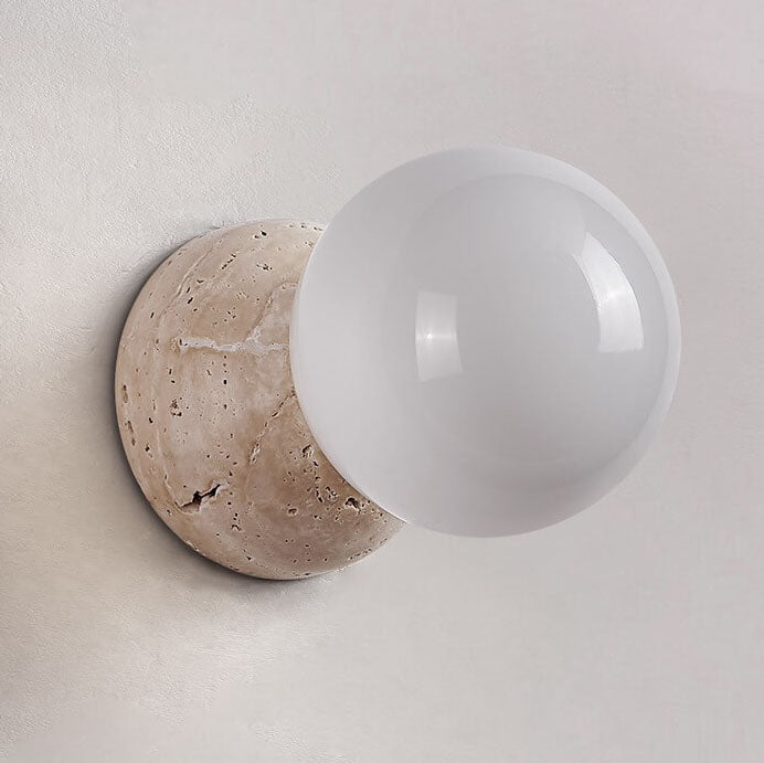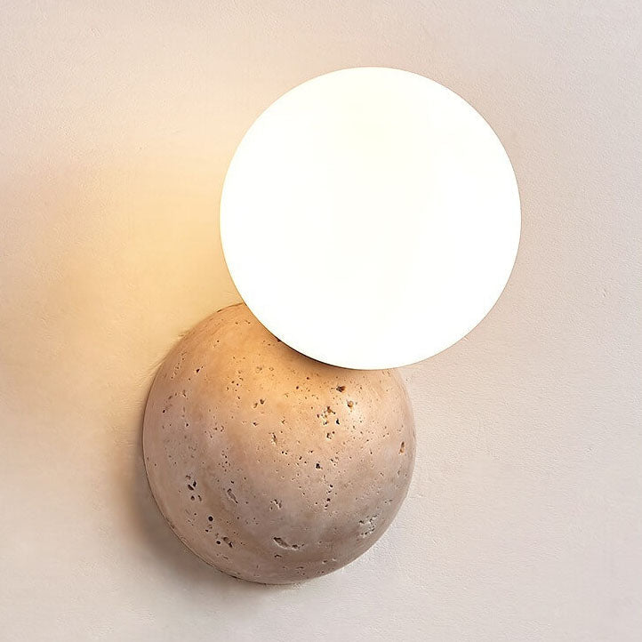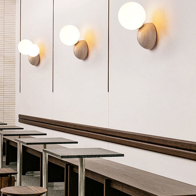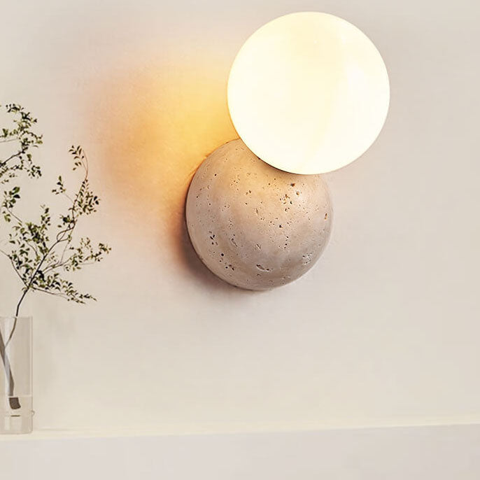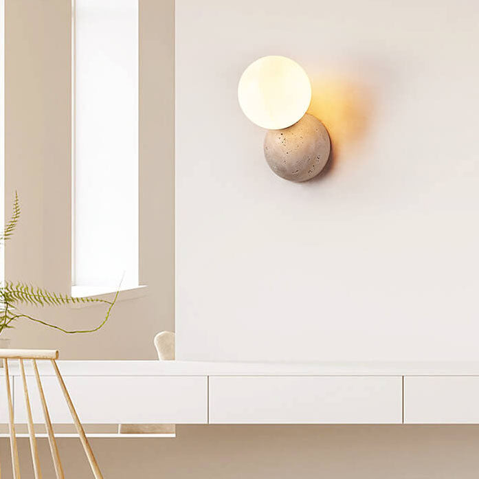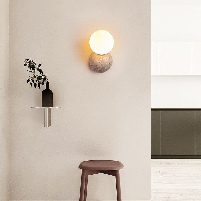 مصباح حائط ياباني بسيط على شكل كرة مستديرة حجرية بضوء واحد