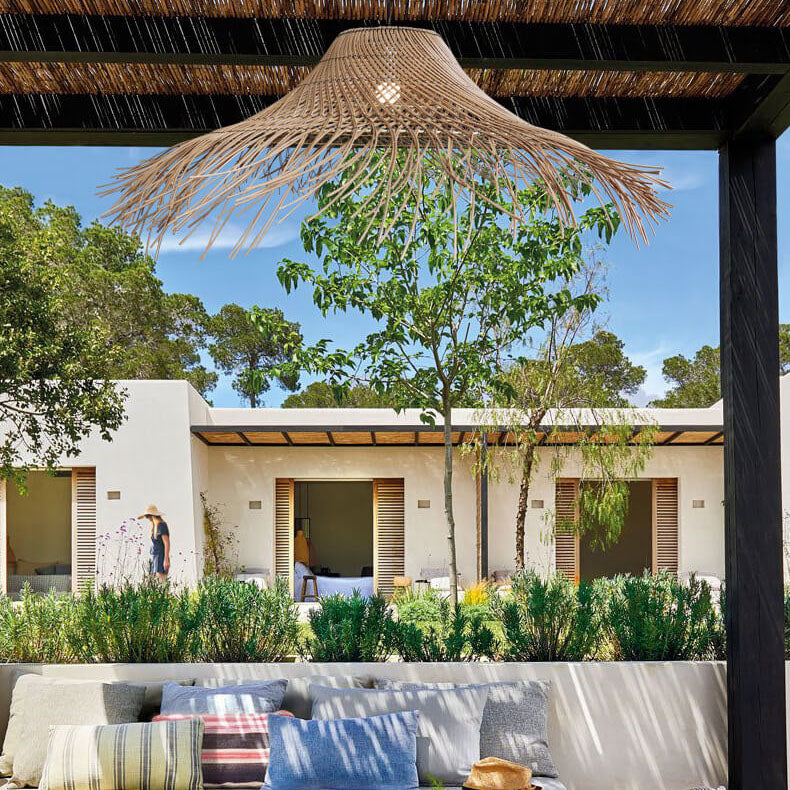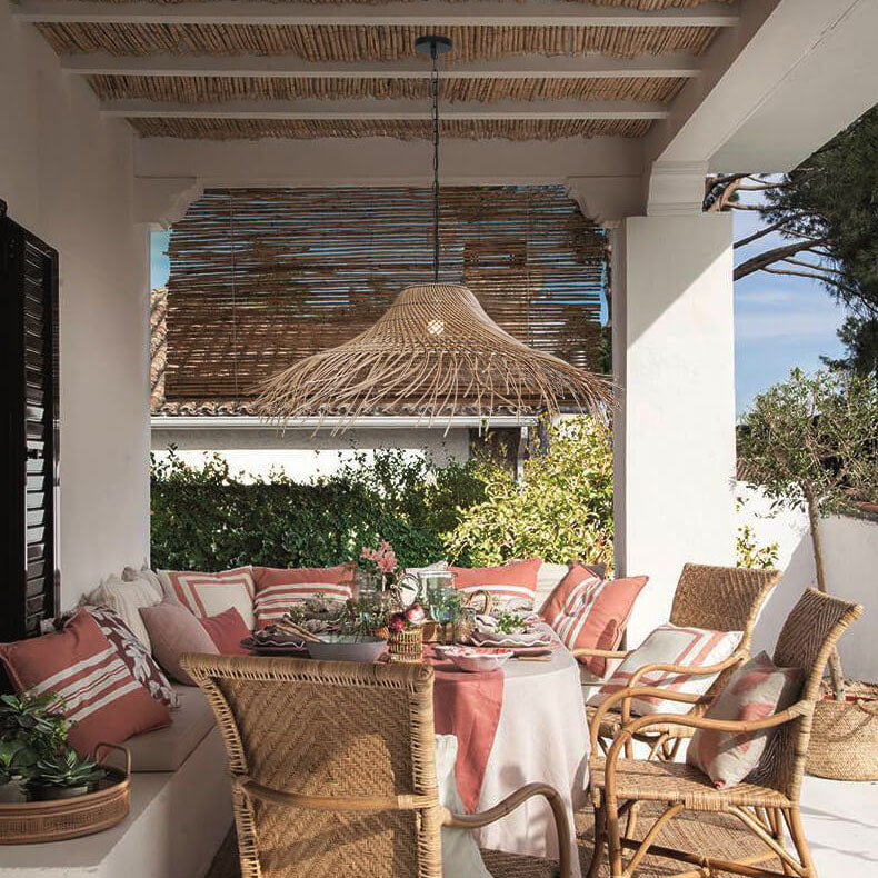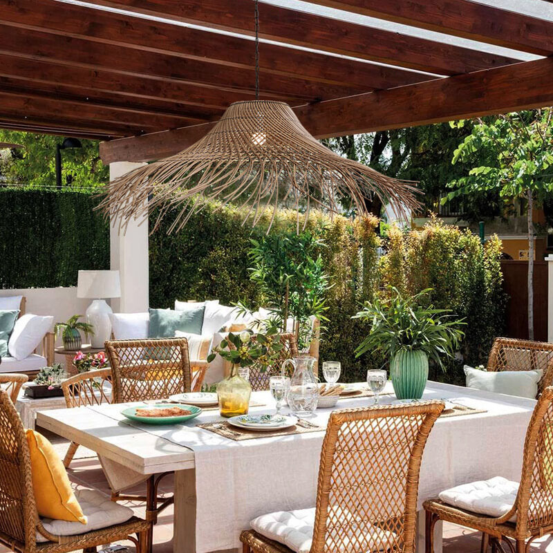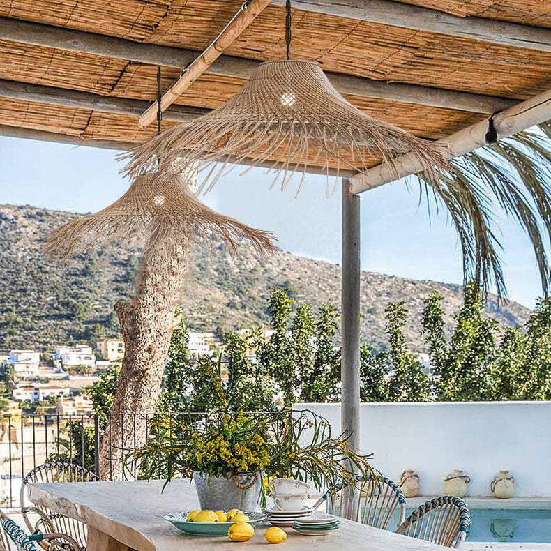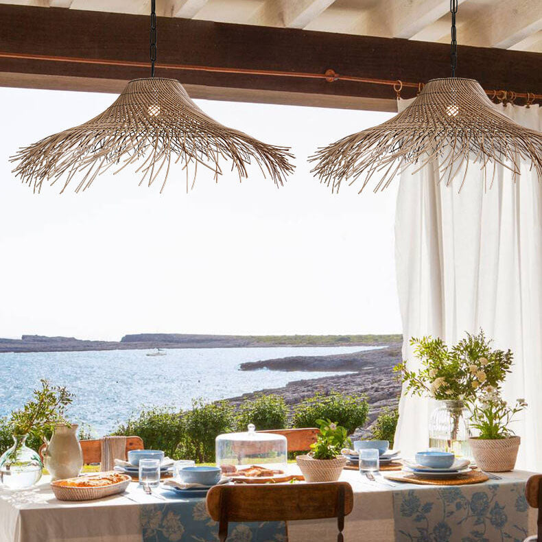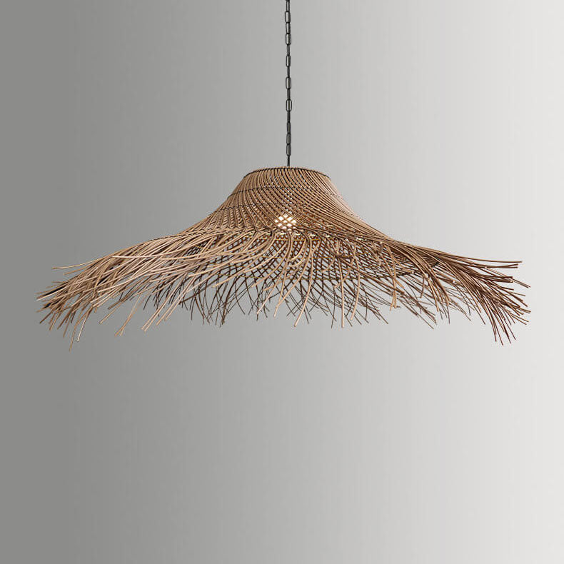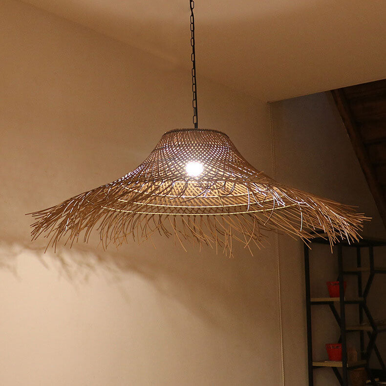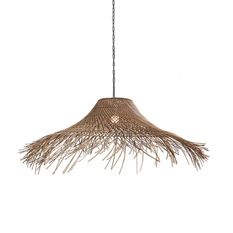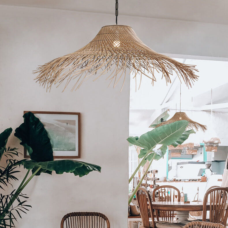 مصباح معلق ياباني بسيط من القش مزود بمصباح واحد