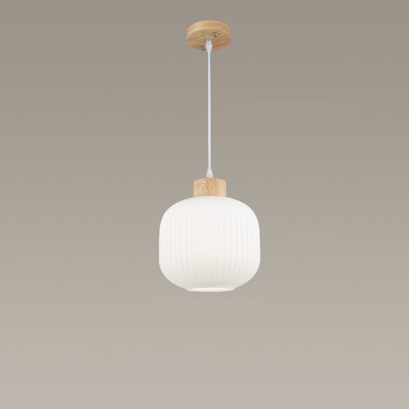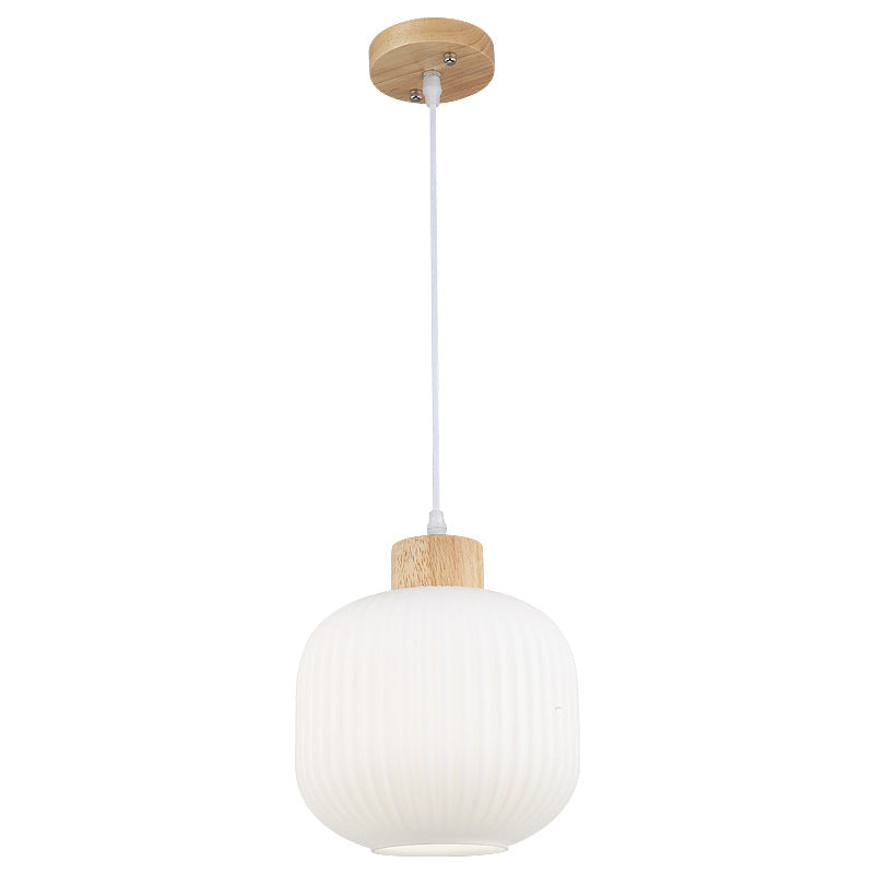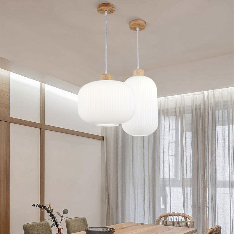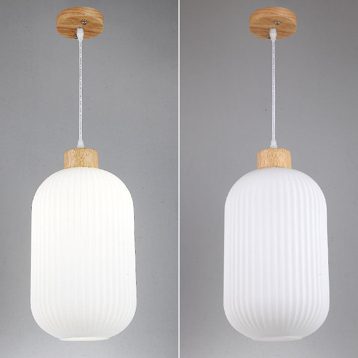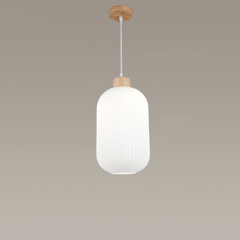 مصباح معلق ياباني بسيط مصنوع من الخشب الصلب ومزين بخطوط زجاجية بيضاوية الشكل ومصباح واحد