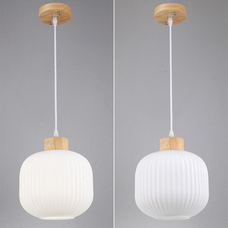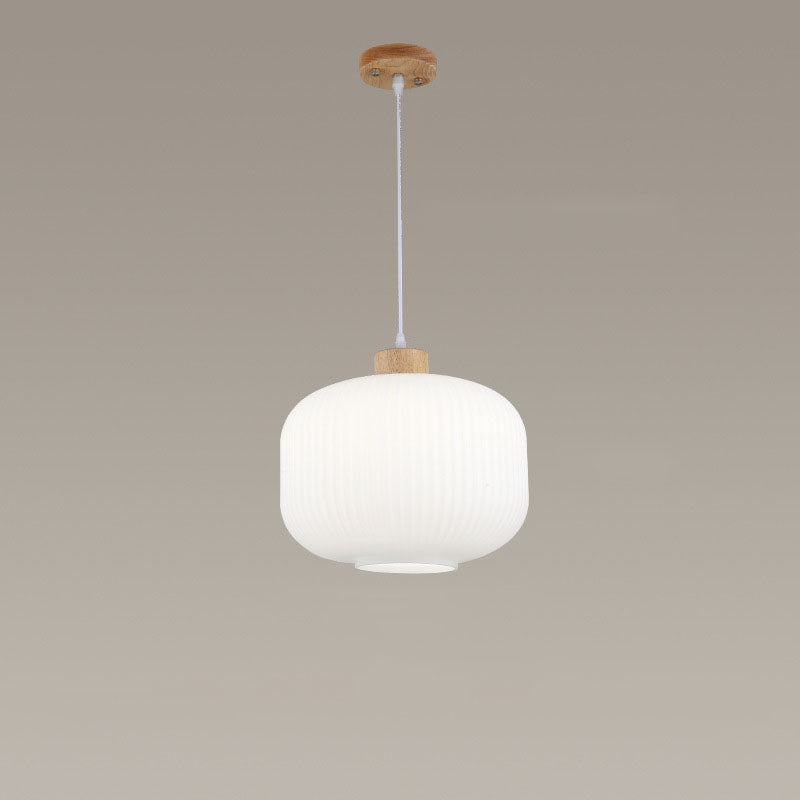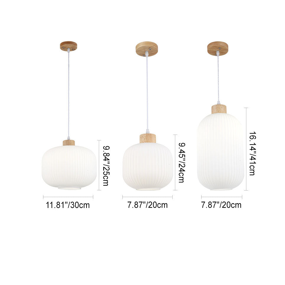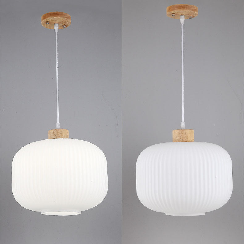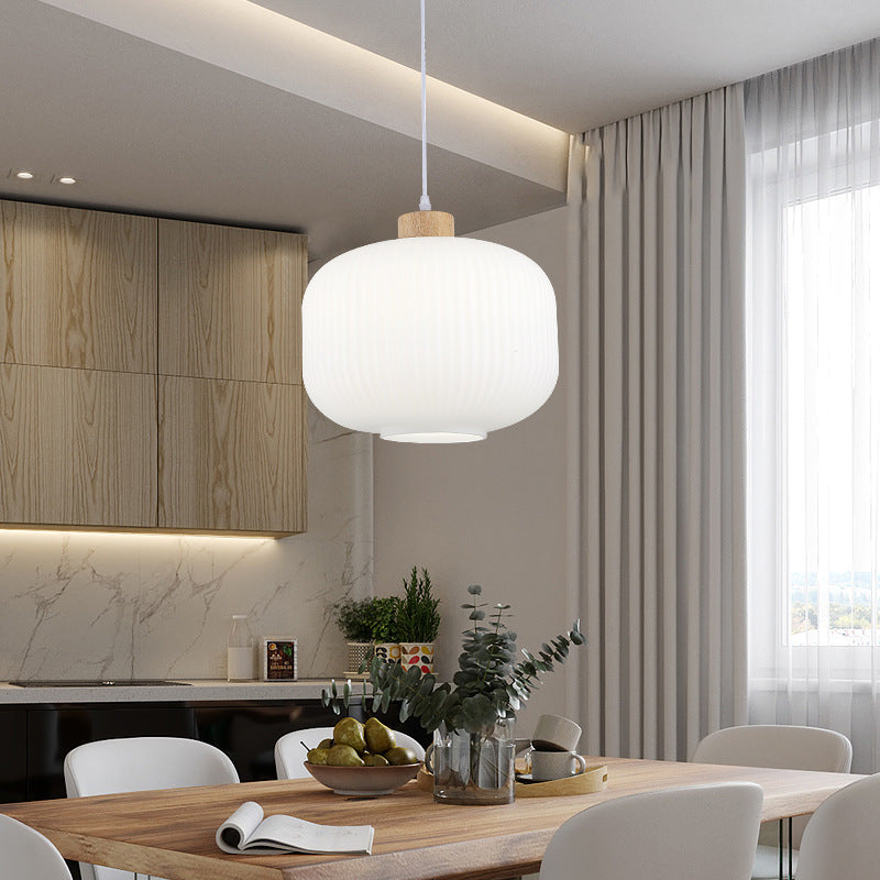 مصباح معلق ياباني بسيط مصنوع من الخشب الصلب ومزين بخطوط زجاجية بيضاوية الشكل ومصباح واحد