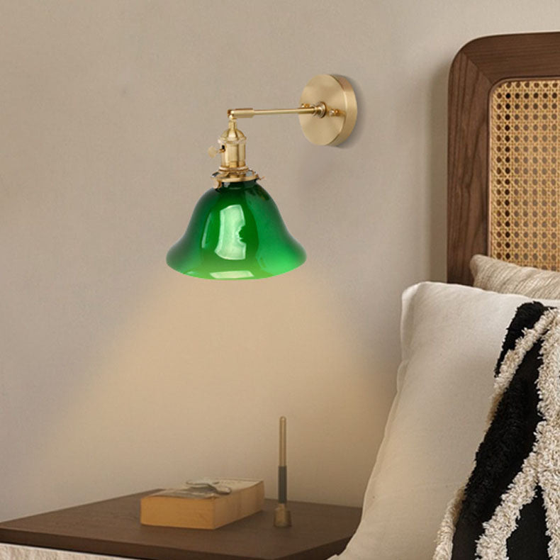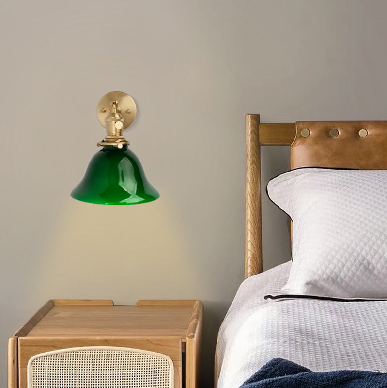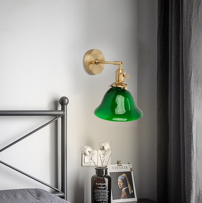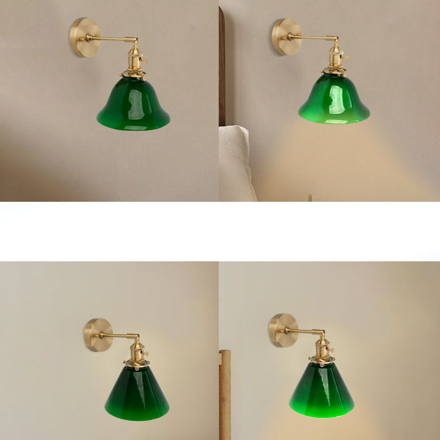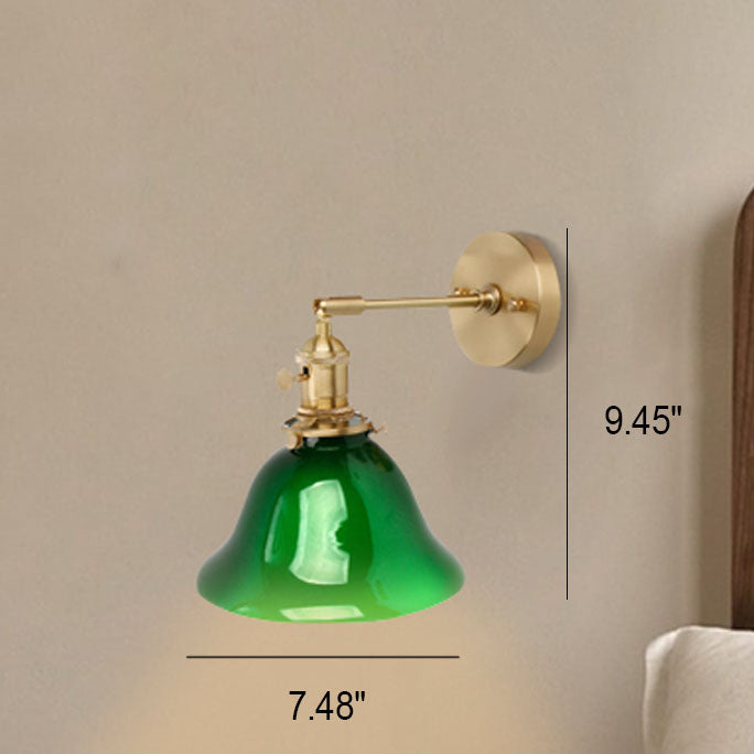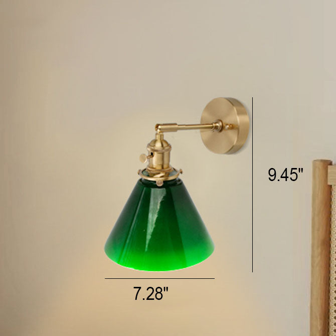 مصباح حائط مخروطي نحاسي أخضر ياباني عتيق مزود بإضاءة واحدة