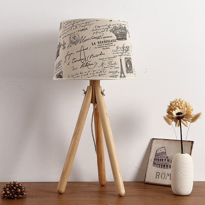 Japanese Simple Round Fabric Three-Legged Wooden Base 1-Light Table Lamp
