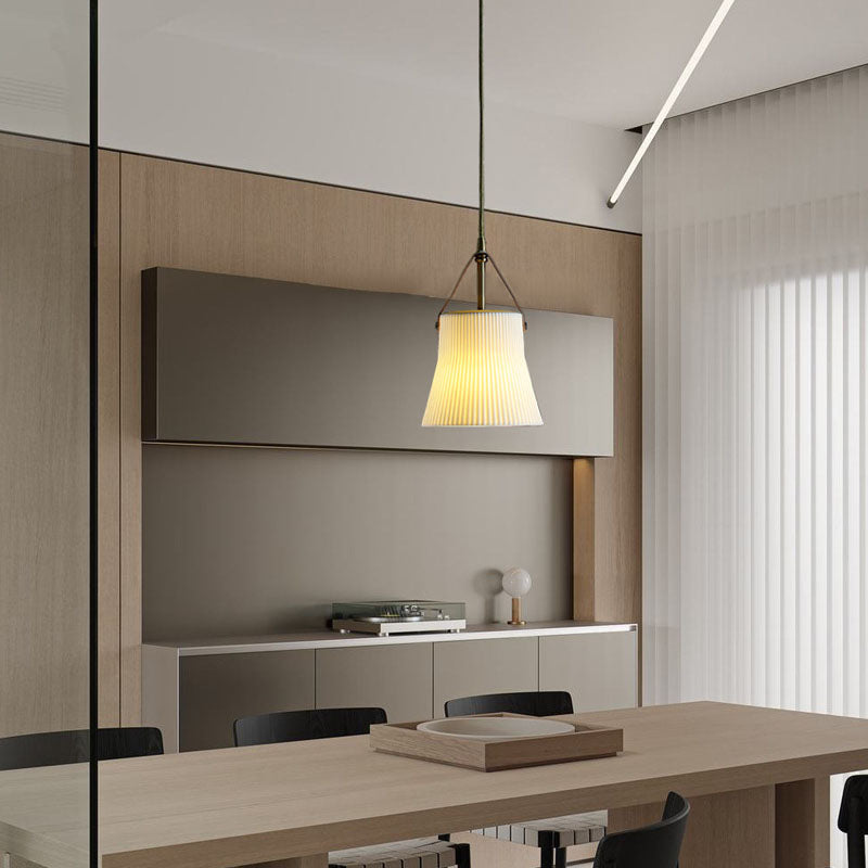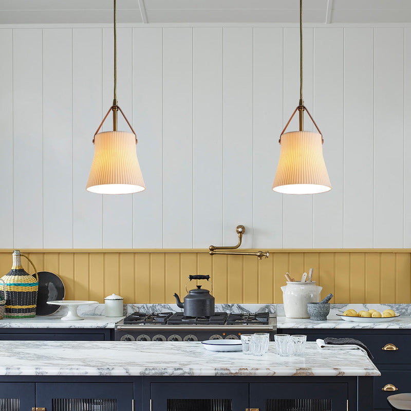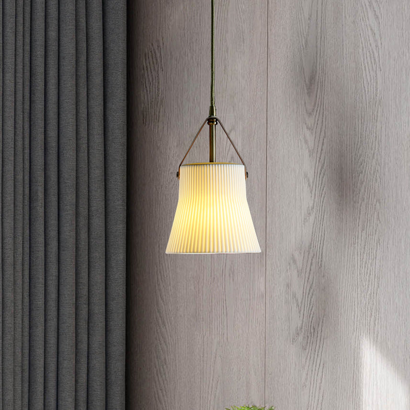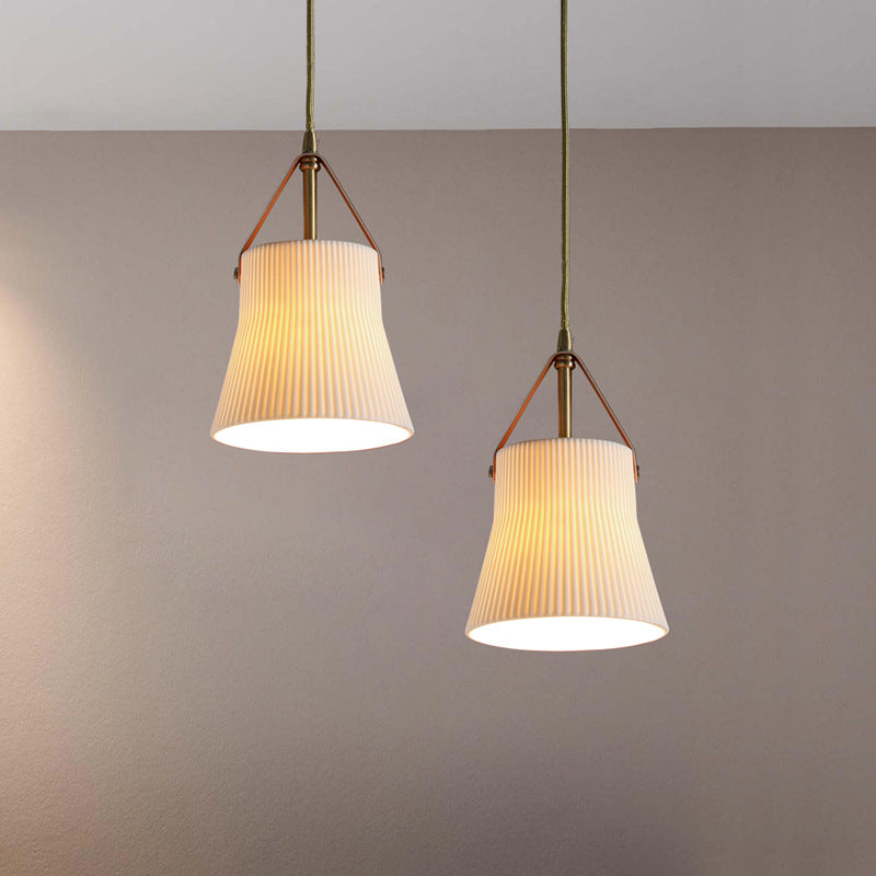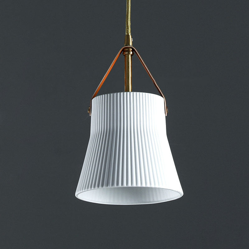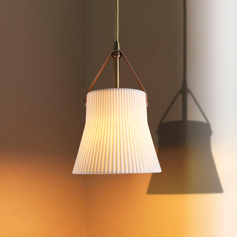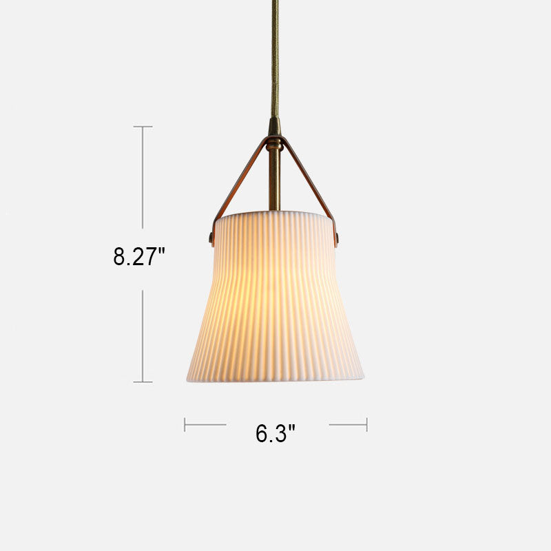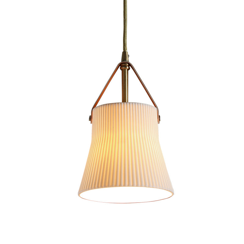 مصباح معلق ياباني عتيق من السيراميك والنحاس والجلد مزود بمصباح واحد