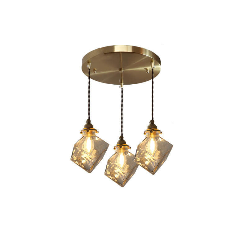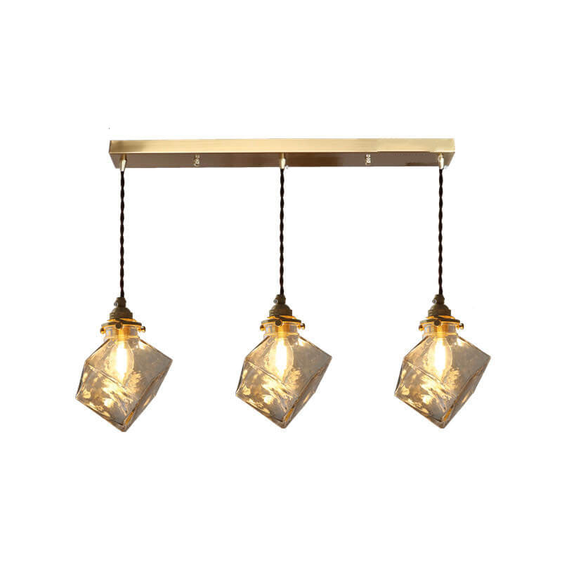 ثريا جزيرة زجاجية نحاسية مربعة الشكل على الطراز الياباني القديم، مزودة بإضاءة 1/3