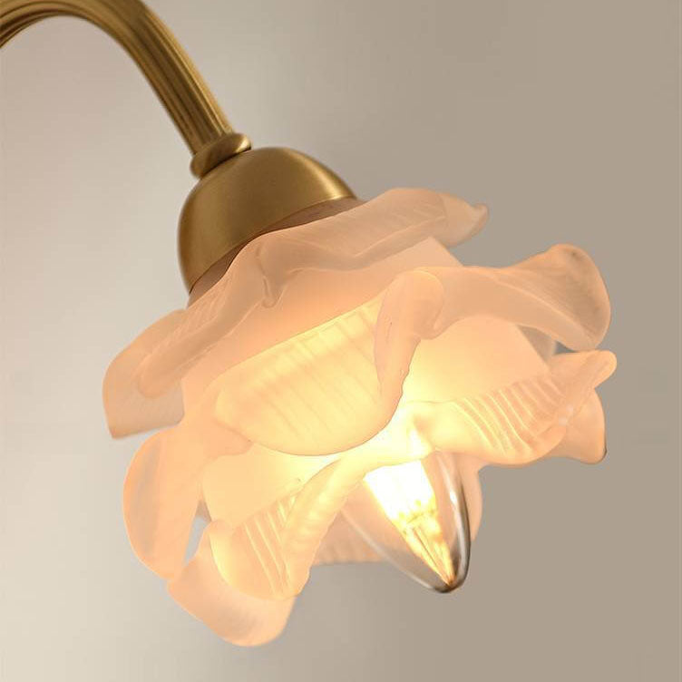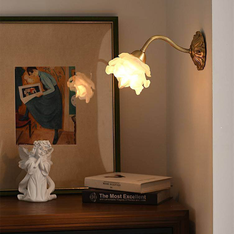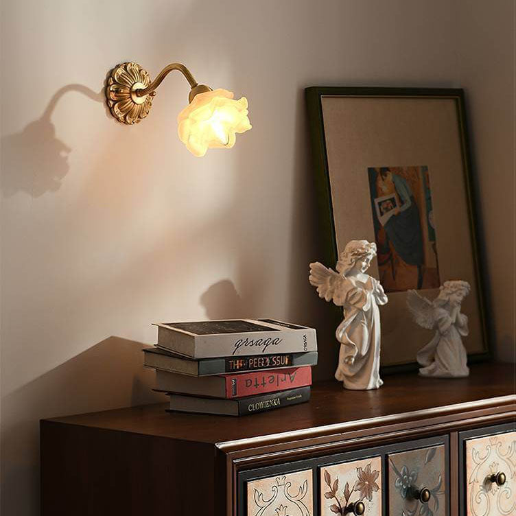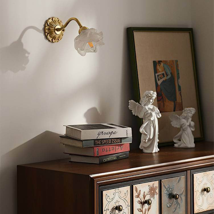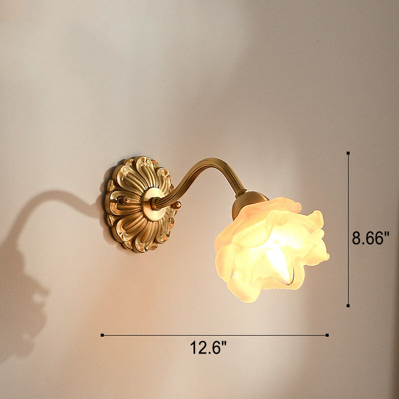 مصباح حائطي من النحاس والزجاج بتصميم وردة يابانية عتيقة، مزود بضوء واحد