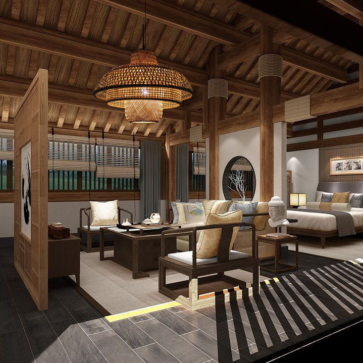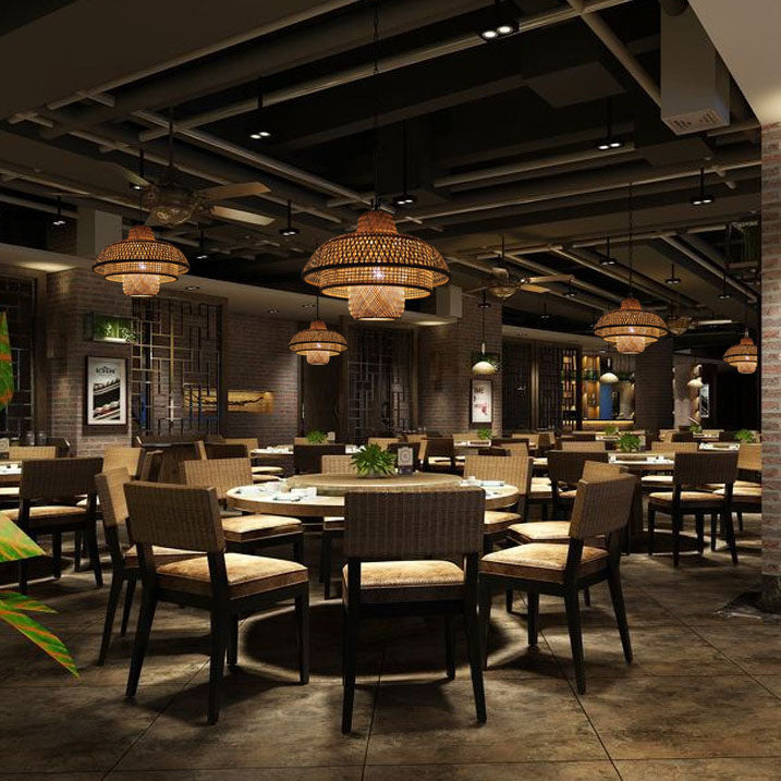 مصباح معلق ياباني عتيق من نسيج الخيزران الثلاثي مزود بمصباح واحد