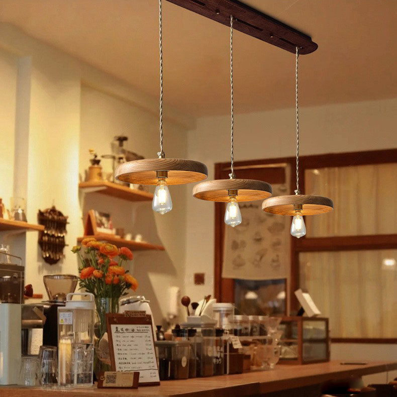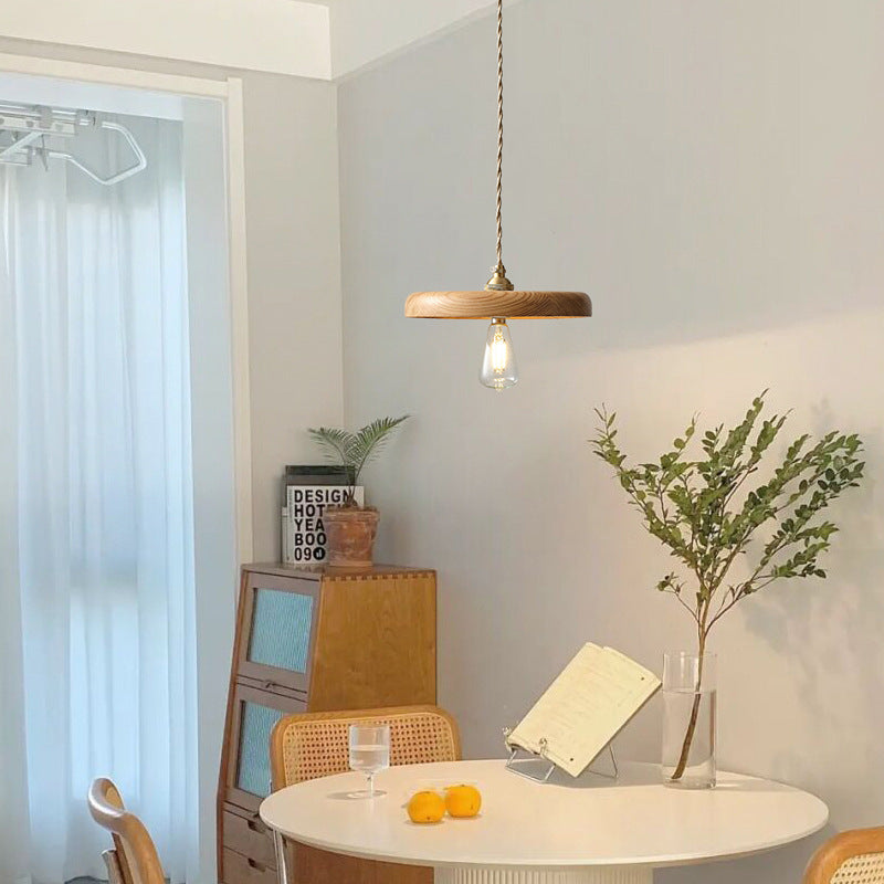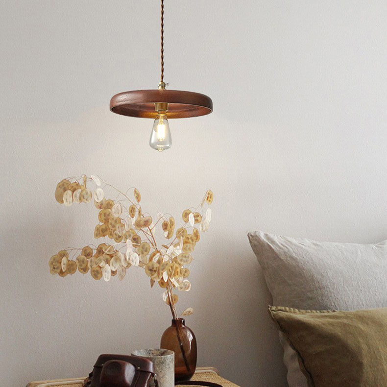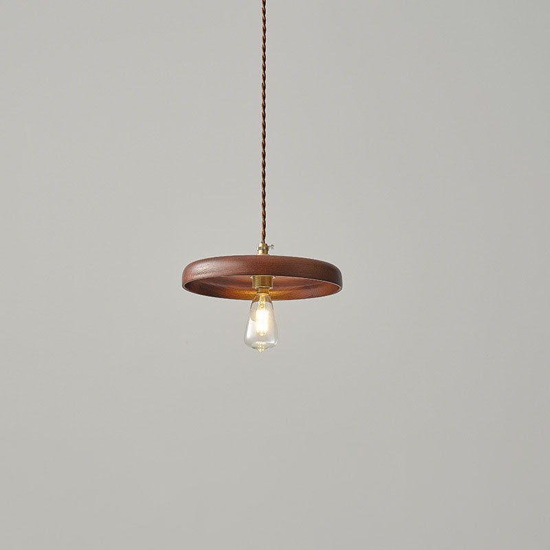مصباح معلق خشبي ياباني عتيق من نوع وابي سابي، مزود بمصباح واحد