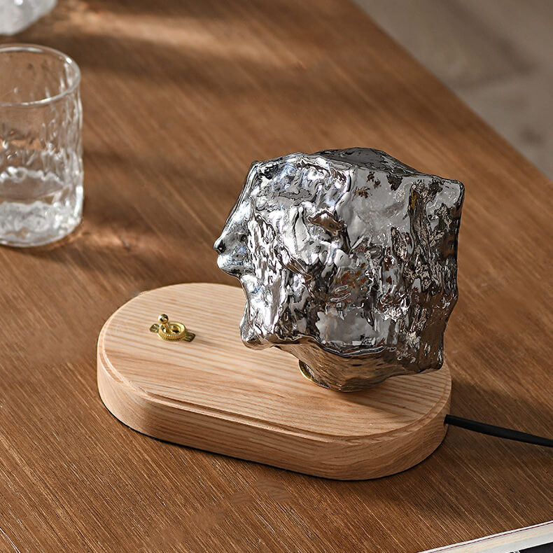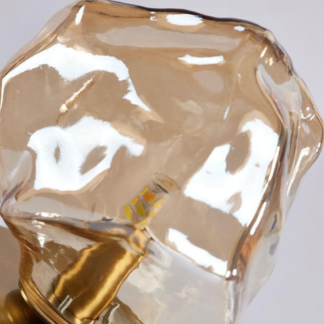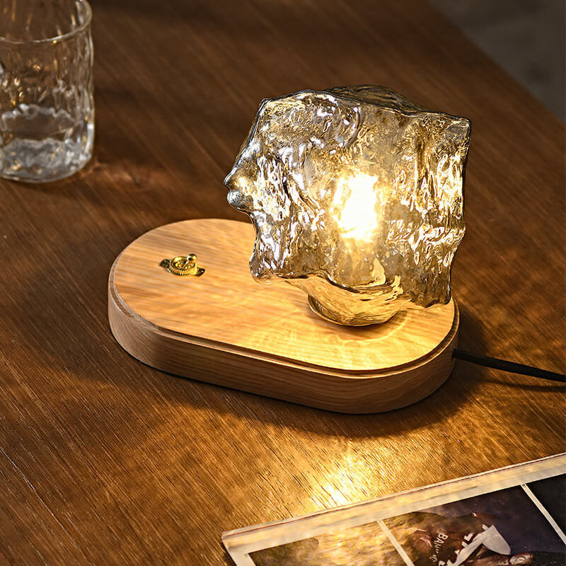 Japanese Vintage Walnut Irregularly Glass Lampshade 1-Light Table Lamp