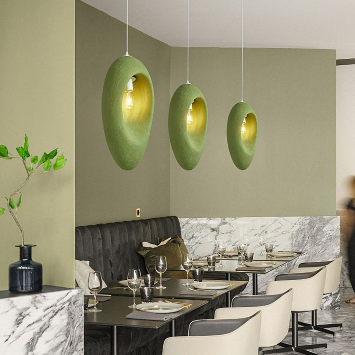 مصباح معلق بيضاوي أخضر ياباني من نوع وابي سابي، مزود بمصباح واحد
