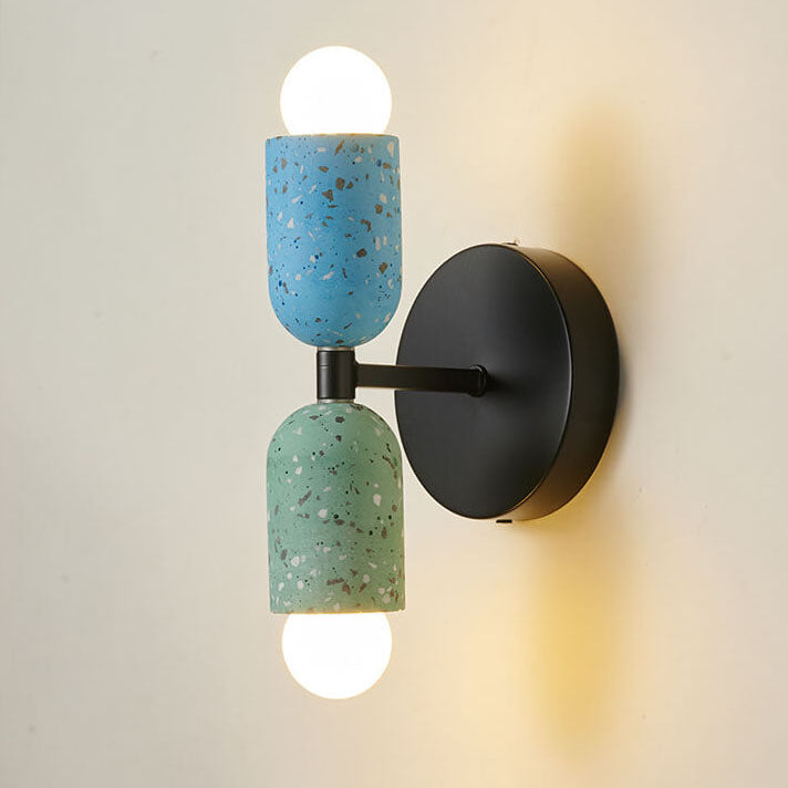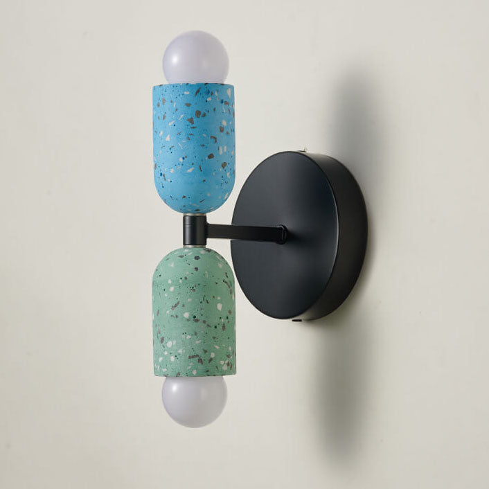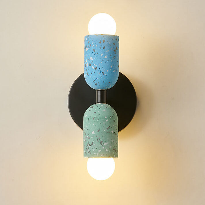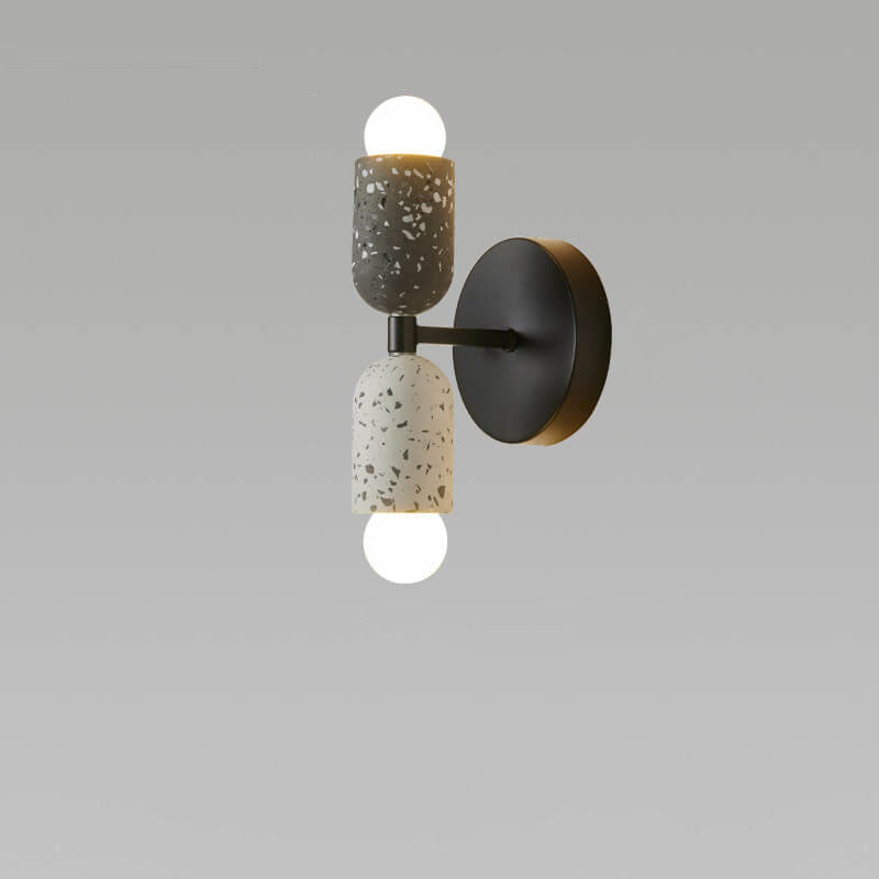 مصباح حائطي ياباني على شكل حجر وابي سابي مصنوع من الحديد والأسمنت، مزود بمصباحين