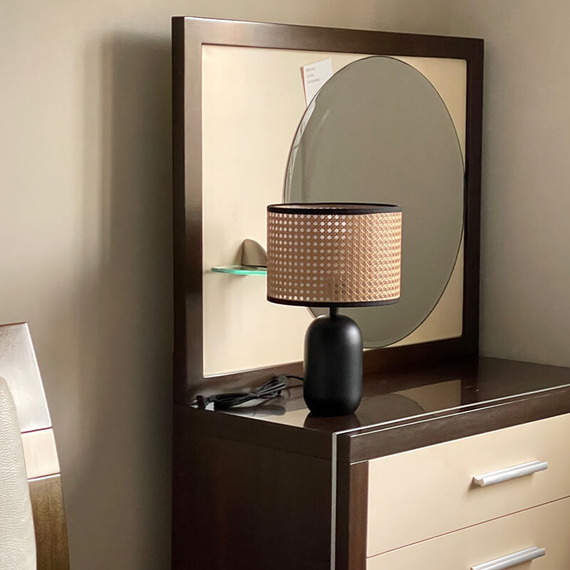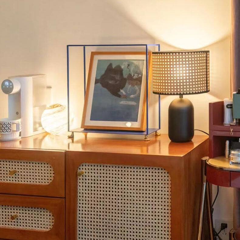 Japanese Wabi-sabi Vintage Rattan Weaving Metal 1-Light Table Lamp