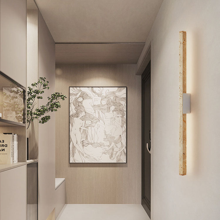مصباح حائط LED طويل من خشب الترافرتين الأصفر الياباني وابي سابي