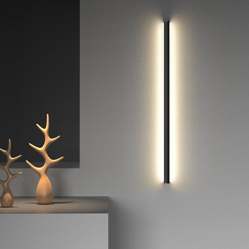 يتميز هذا المصباح الجداري الخطي البسيط بتصميم أسطواني أنيق بخطوط واضحة ومتواصلة، يندمج بسلاسة مع الديكورات الداخلية العصرية. مصنوع من معدن أسود متين بلمسة نهائية غير لامعة، ومُزود بموزع من مادة PVC عالية الشفافية يُخفف من حدة مصدر ضوء LED المدمج، ليُضفي توهجًا أنيقًا وموحدًا على الحائط.