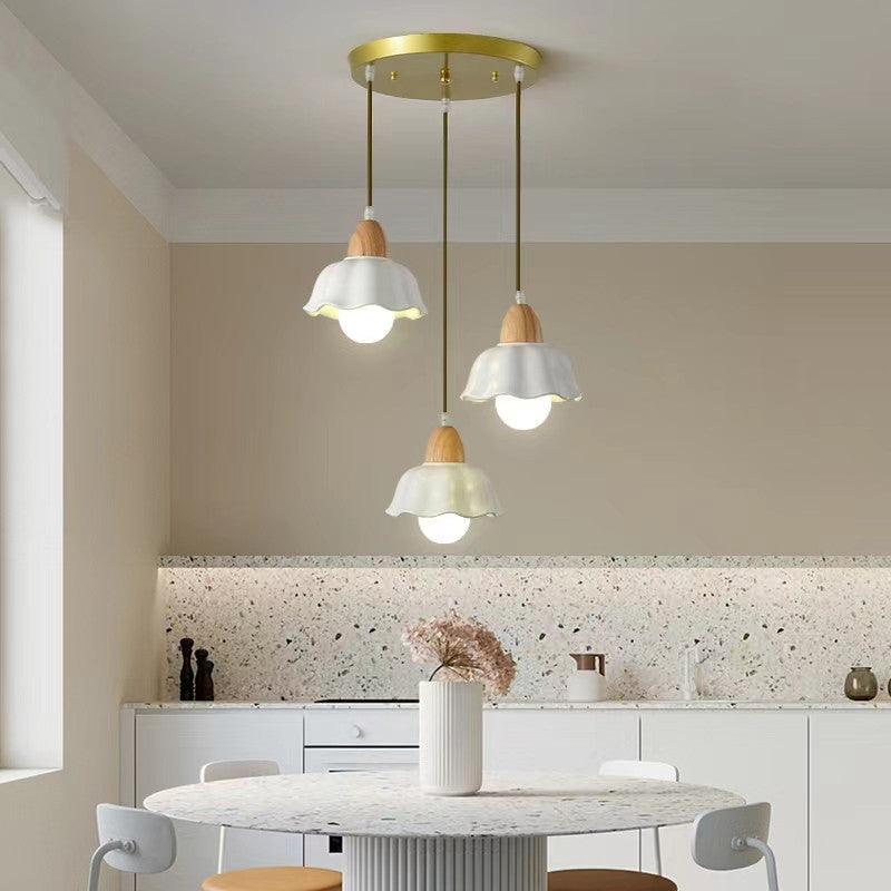 ثريا جزيرة بإضاءة 1/3 ضوء بتصميم زهرة سيراميكية حديثة لغرفة المعيشة