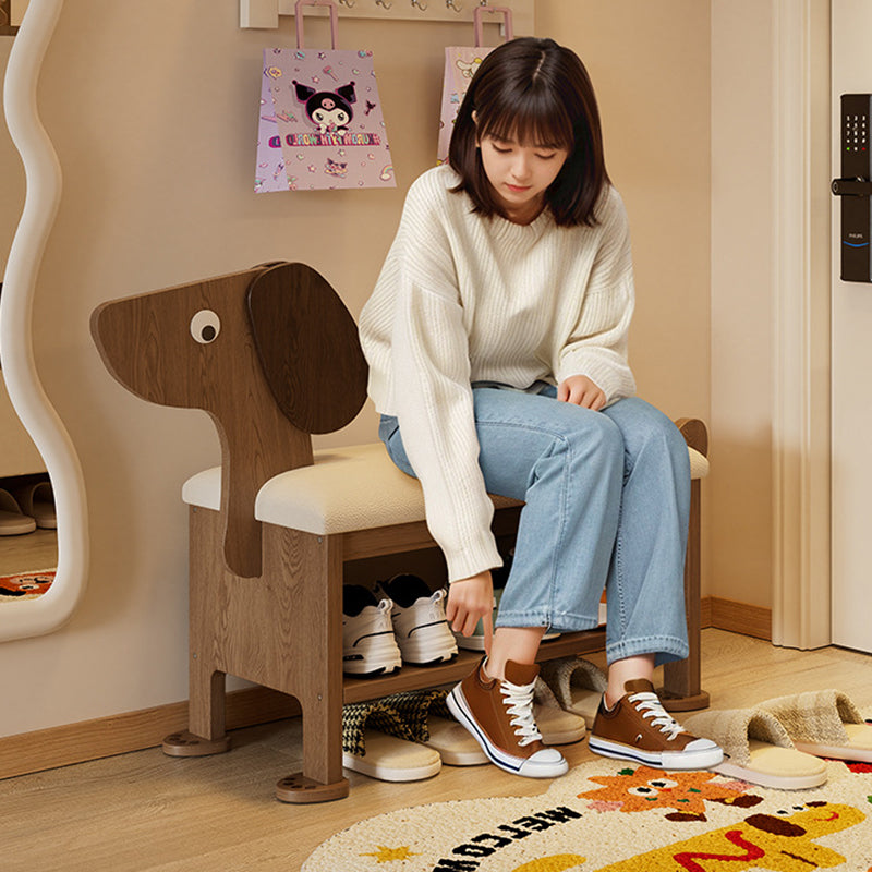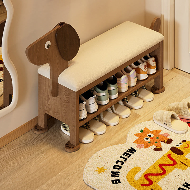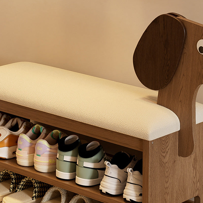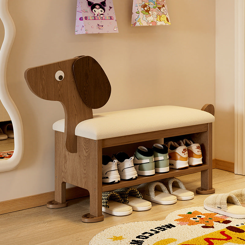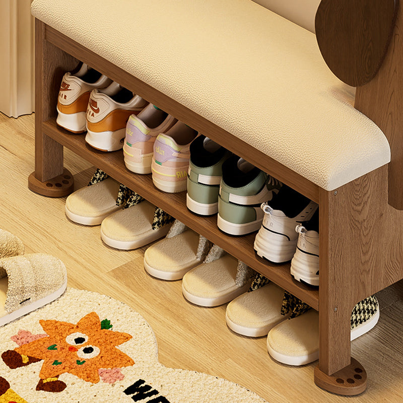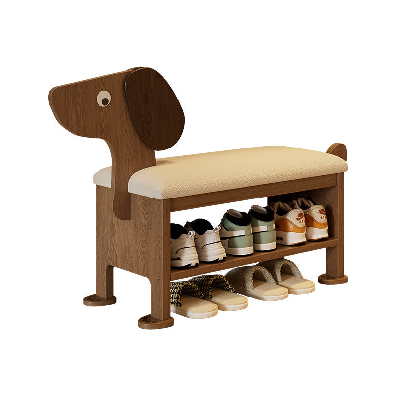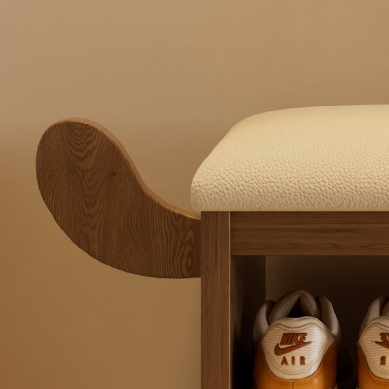 مقعد حذاء للأطفال بدون ظهر وبدون أذرع للمدخل مصنوع من إسفنج جلد البولي يوريثان وخشب المطاط بتصميم آرت ديكو الحديث