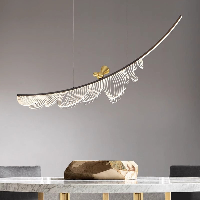 ثريا LED مصنوعة من النحاس والأكريليك بتصميم ريش الطيور من آرت ديكو الحديث لغرفة الطعام