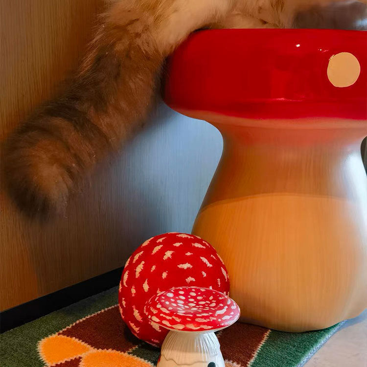 Add a playful pop to your space with this red mushroom-shaped stool made of durable fiberglass and plastic. Its natural curved lines and sculptural form make it perfect as a decorative low seat, accent table, or whimsical gift for new homes.
