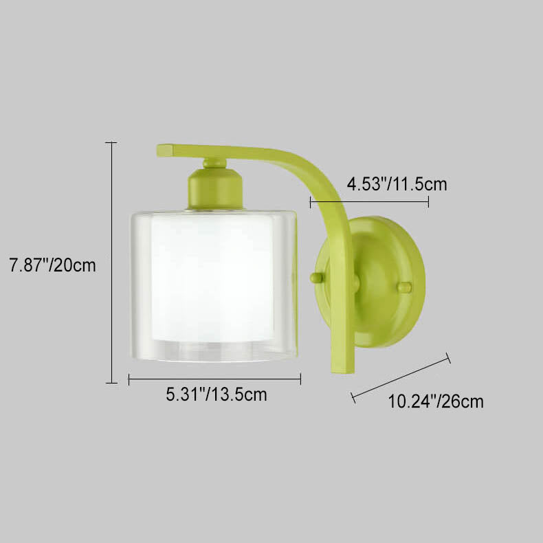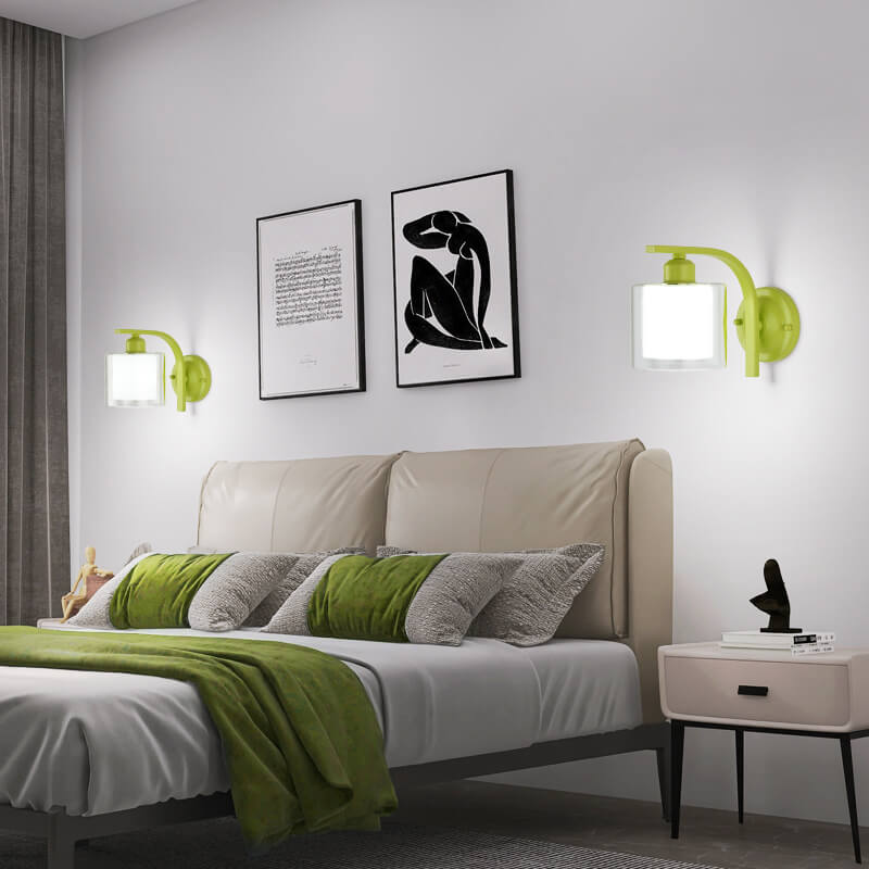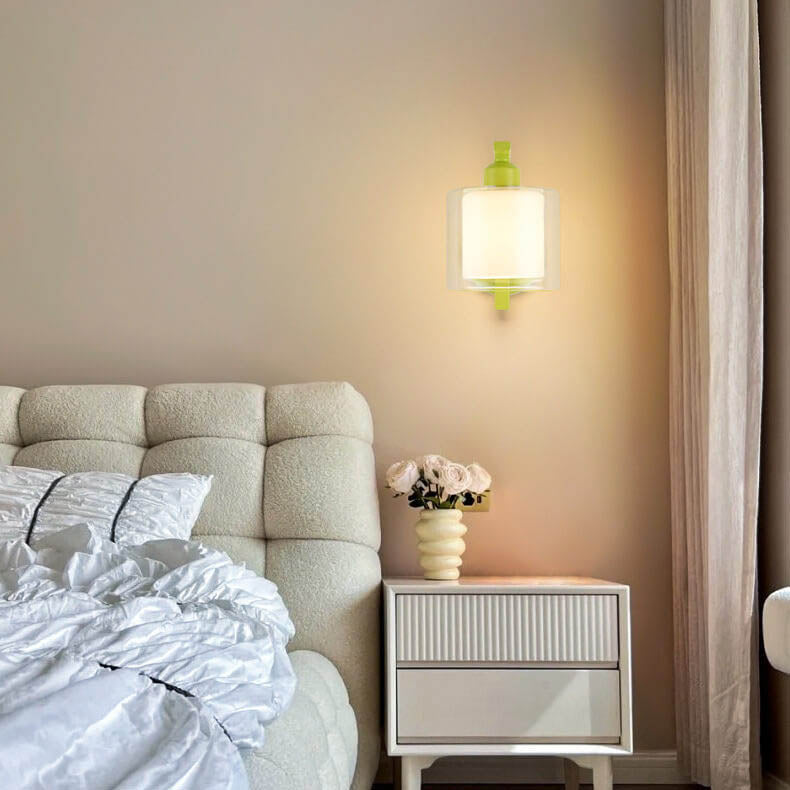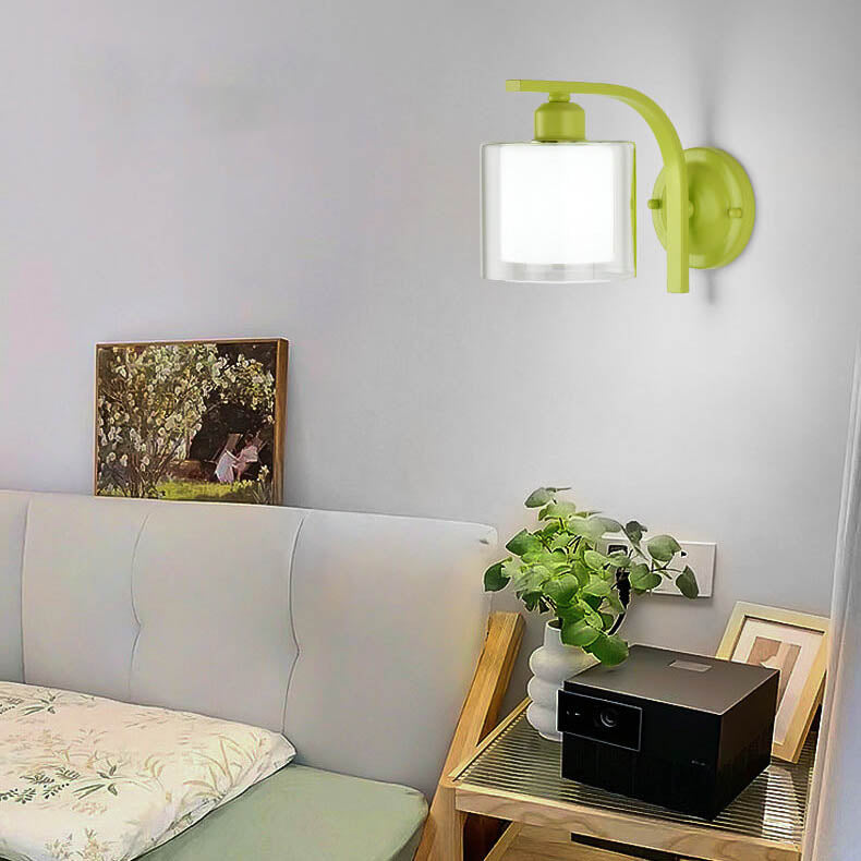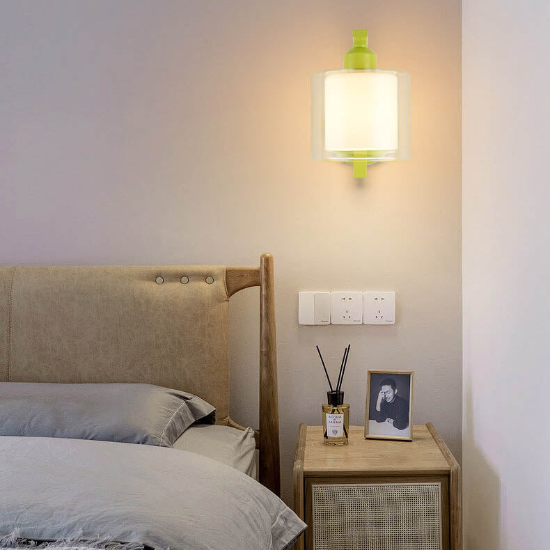 مصباح حائط معدني حديث على شكل أسطوانة زجاجية خضراء لغرفة النوم، مزود بمصباح واحد