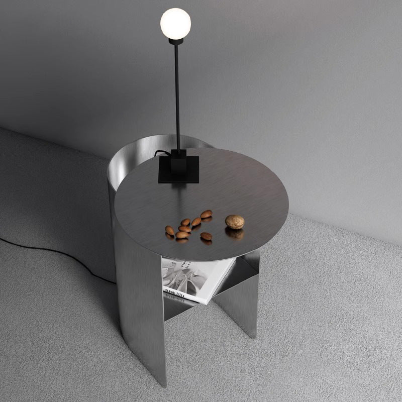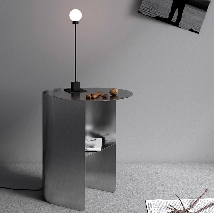 Modern Art Deco Half Cylinder Stainless Steel Side Table 2 - Tier For Bedroom