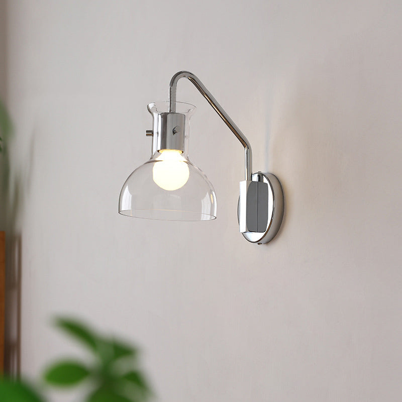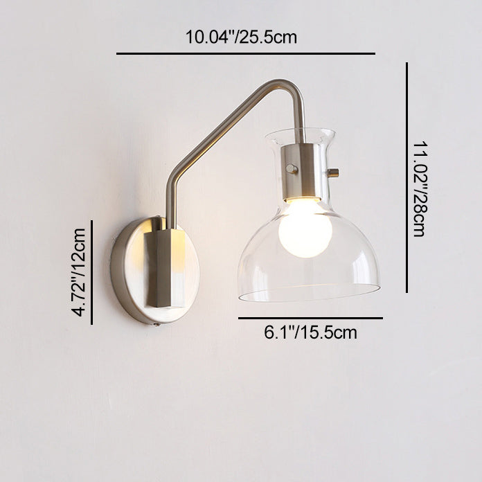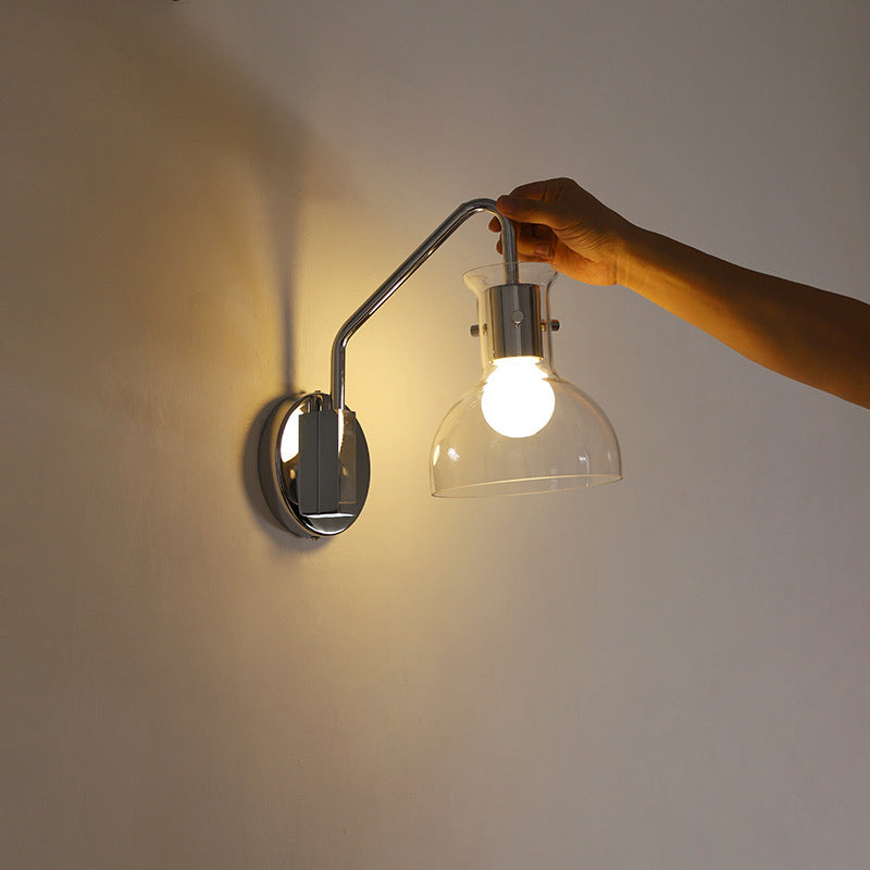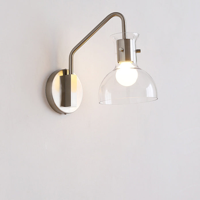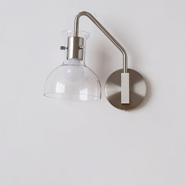 مصباح جداري بتصميم آرت ديكو عصري مصنوع من الحديد والزجاج، نصف دائري، شفاف، بقضيب مستقيم، مزود بمصباح واحد، لغرفة النوم وغرفة المعيشة