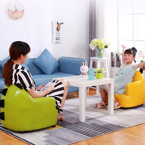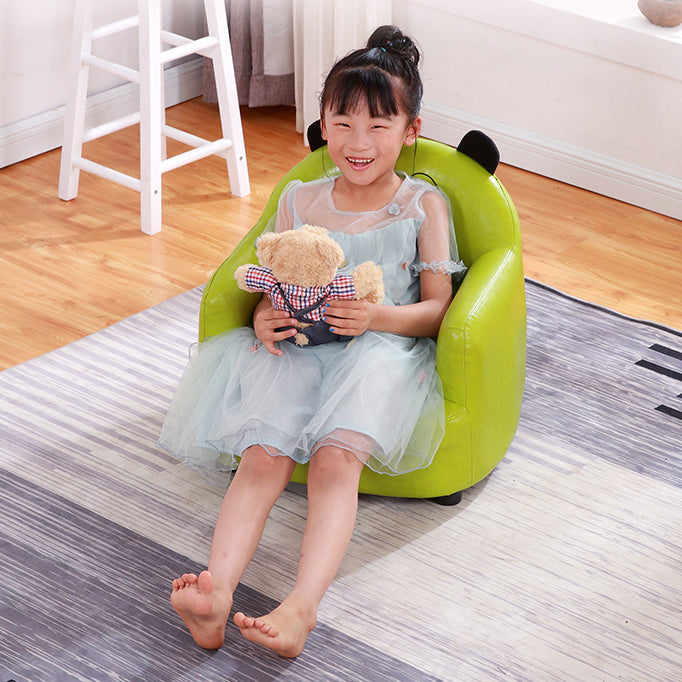 This modern Art Deco kids chair sofa blends playful animal-shaped design with oil-waxed leather and a durable solid wood frame. Featuring a supportive backrest and armrests, its wraparound silhouette comes in vibrant blue, rose pink, yellow, and soft pink—ideal for any child's bedroom or playroom.