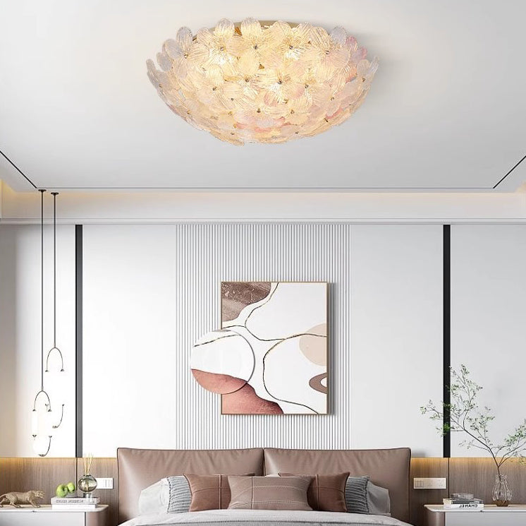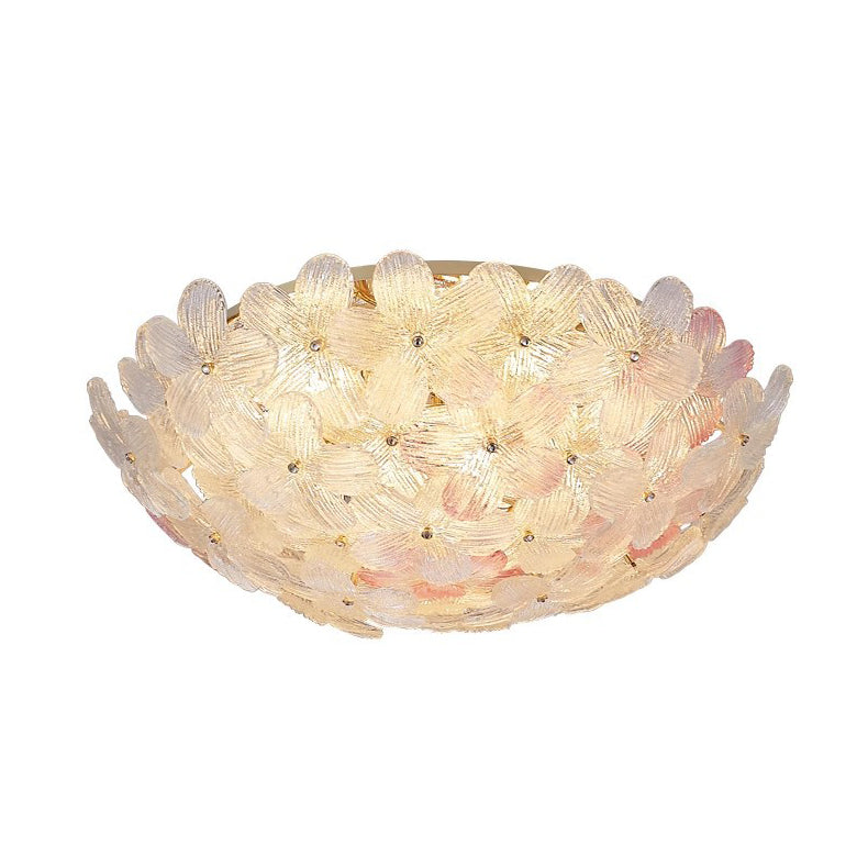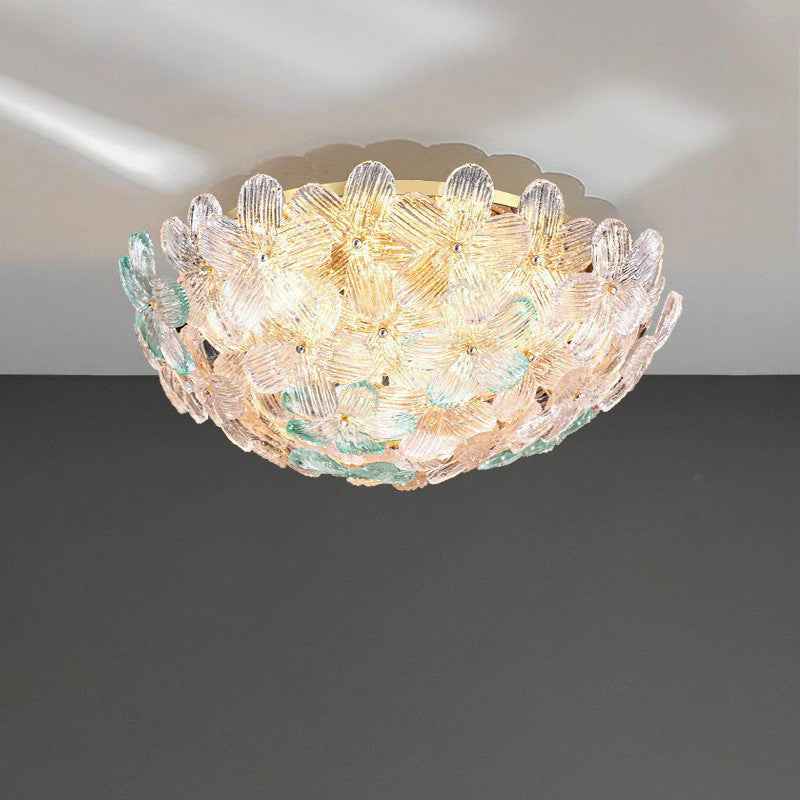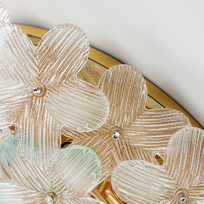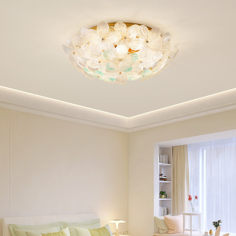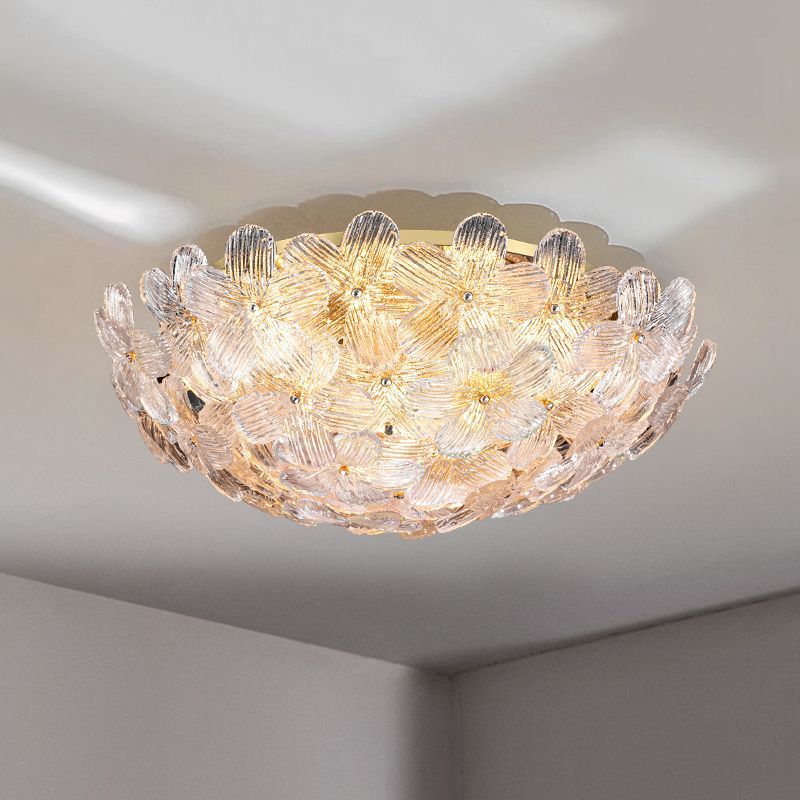 مصباح سقف دائري من الحديد الزجاجي بتصميم بتلات على طراز آرت ديكو الحديث، مكون من 6 مصابيح، مثبت بشكل نصف مسطح، لغرفة المعيشة