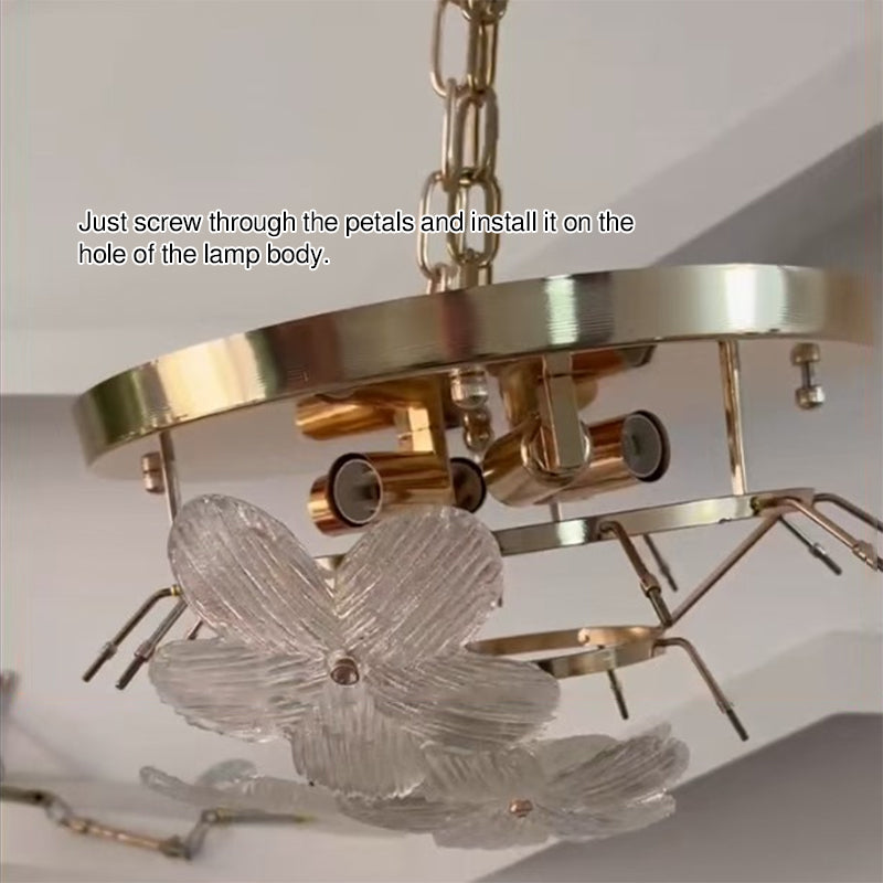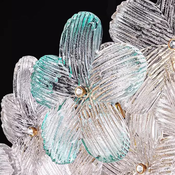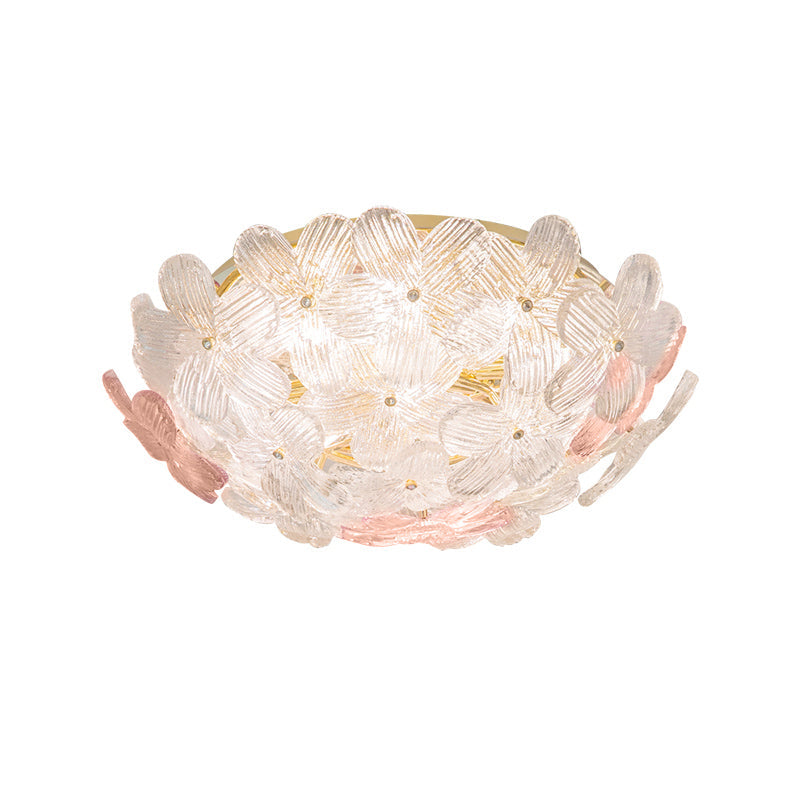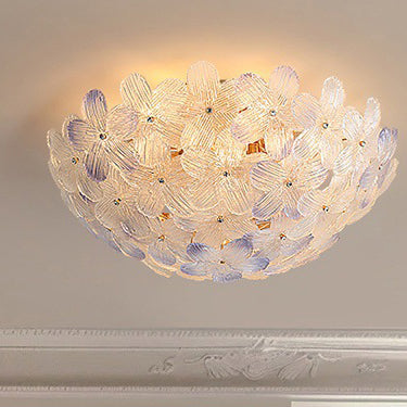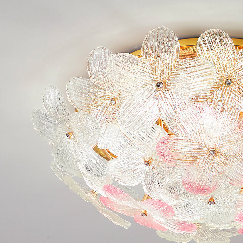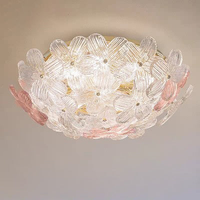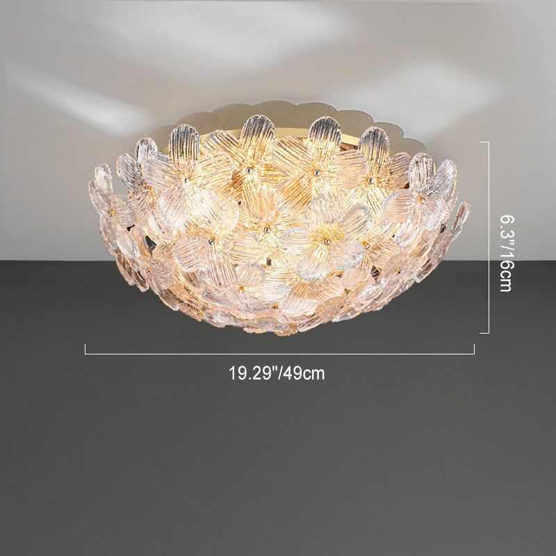 مصباح سقف دائري من الحديد الزجاجي بتصميم بتلات على طراز آرت ديكو الحديث، مكون من 6 مصابيح، مثبت بشكل نصف مسطح، لغرفة المعيشة