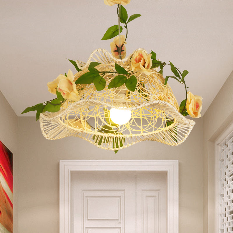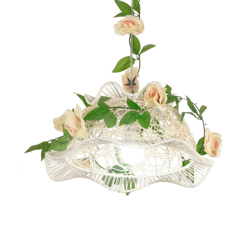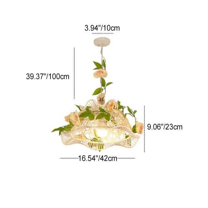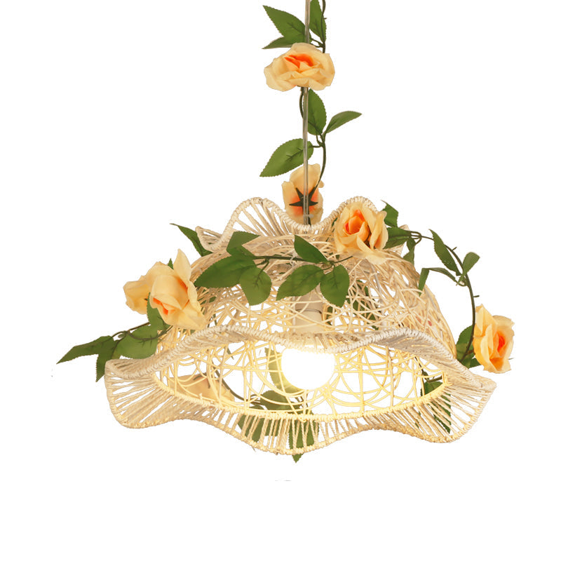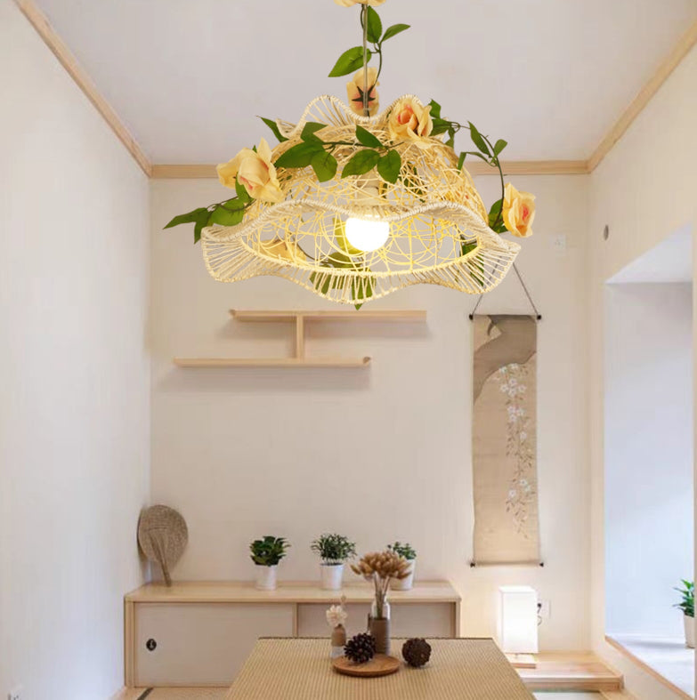 مصباح معلق من الحديد الروطان المنسوج يدويًا على شكل زهرة دائرية بتصميم عصري لغرفة المعيشة