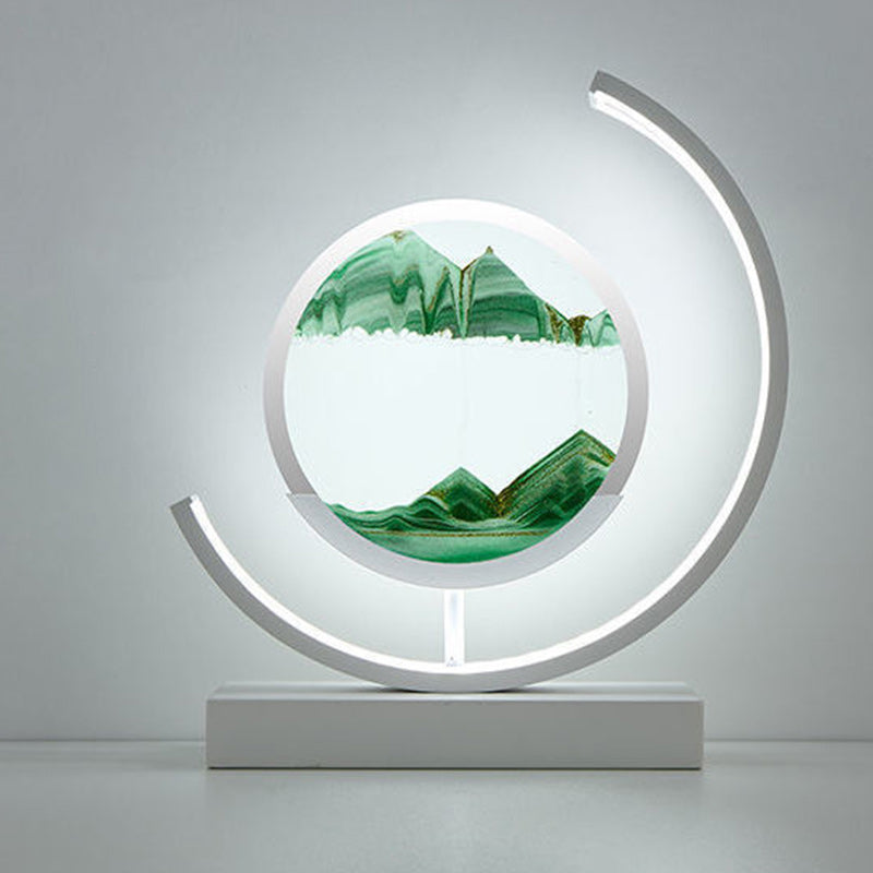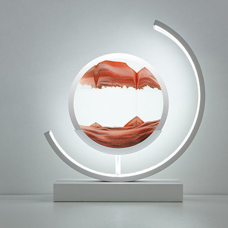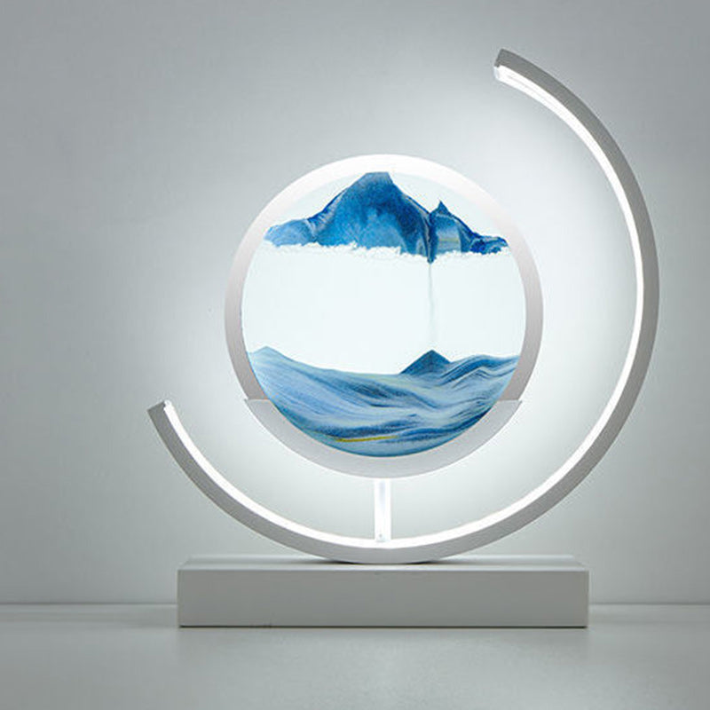 Modern Art Deco Round Quicksand Iron Glass LED Table Lamp For Bedroom